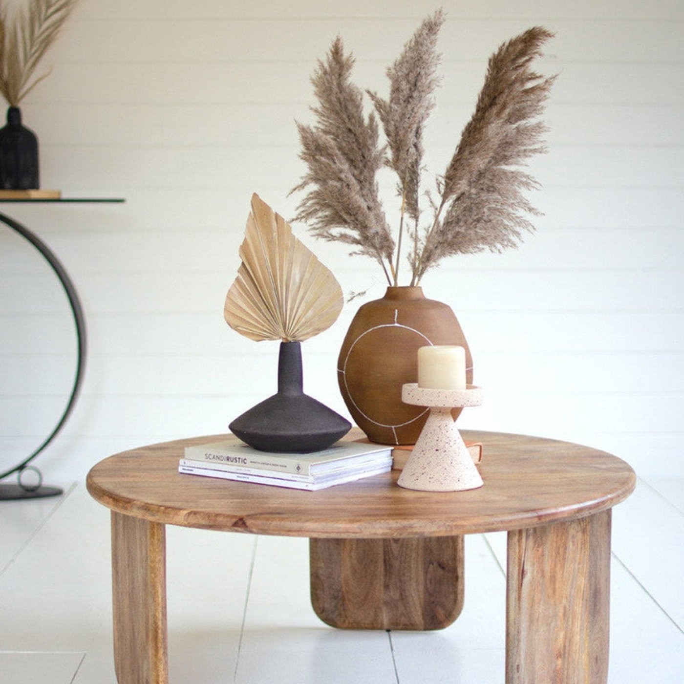 Whether you're enjoying a quiet evening with a book or entertaining guests, this Round Mango Wood Coffee Table creates a cozy and inviting atmosphere. The smooth, spacious surface offers ample room for beverages, decor, and everyday essentials, making it both functional and aesthetically pleasing. Its timeless design ensures it will be a focal point in your home for years to come.
