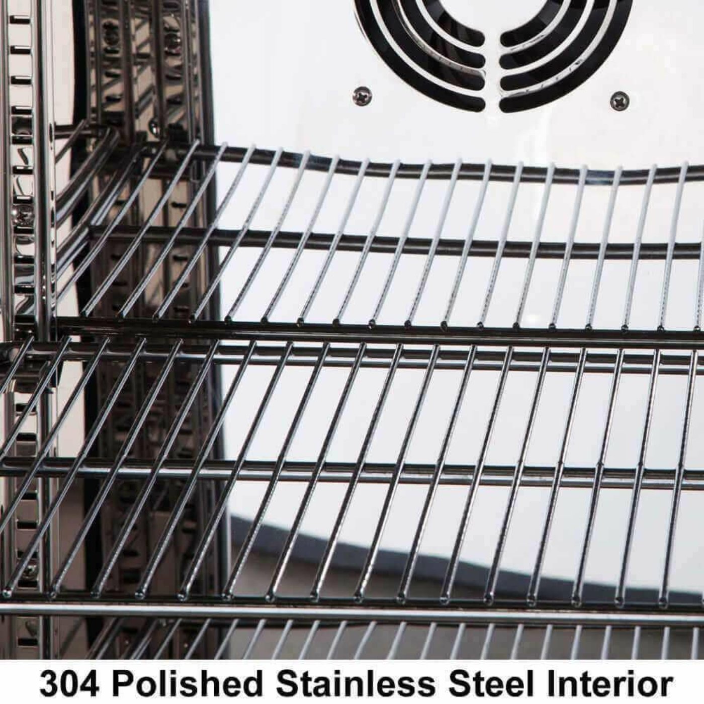Solid construction with type 304 commercial grade stainless steel exterior and polished stainless steel interior is sleek and energy efficient.