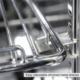 | Shelf Configuration | 2 chromed metal shelves, fully adjustable |