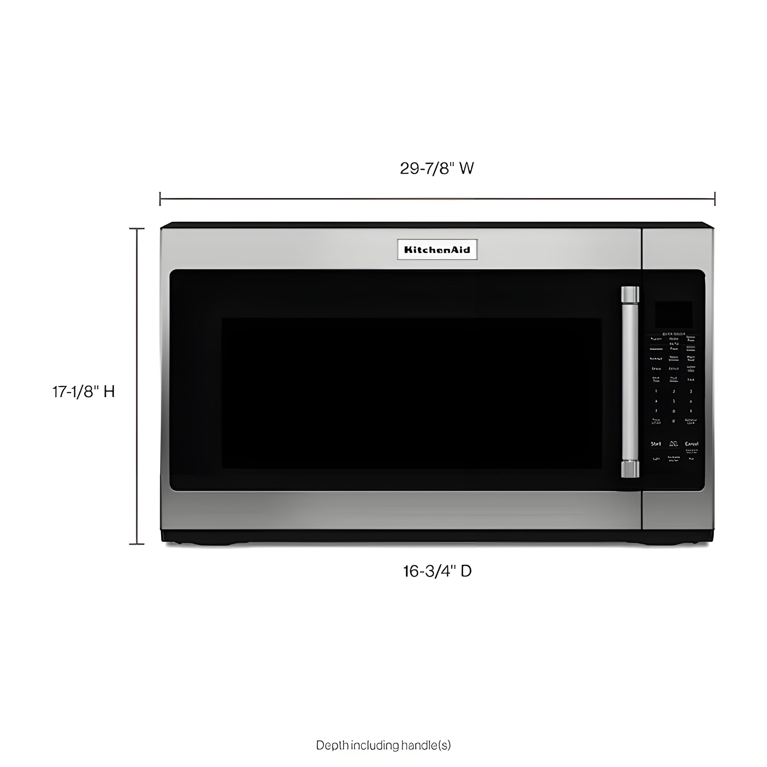 Elevate your kitchen with the KitchenAid 2-cu ft 1000-Watt Over-the-Range Microwave, a versatile appliance designed to streamline your cooking experience. Equipped with advanced sensor functions, this microwave automatically adjusts time and power levels for cooking, reheating, or defrosting, eliminating the guesswork and ensuring perfect results every time. The powerful 1000-watt cooking capability and two halogen task lights enhance visibility and efficiency while preparing meals. The sleek Stainless Steel exterior with PrintShield™ Finish not only adds a touch of elegance but also resists smudges and fingerprints, keeping your kitchen looking pristine.