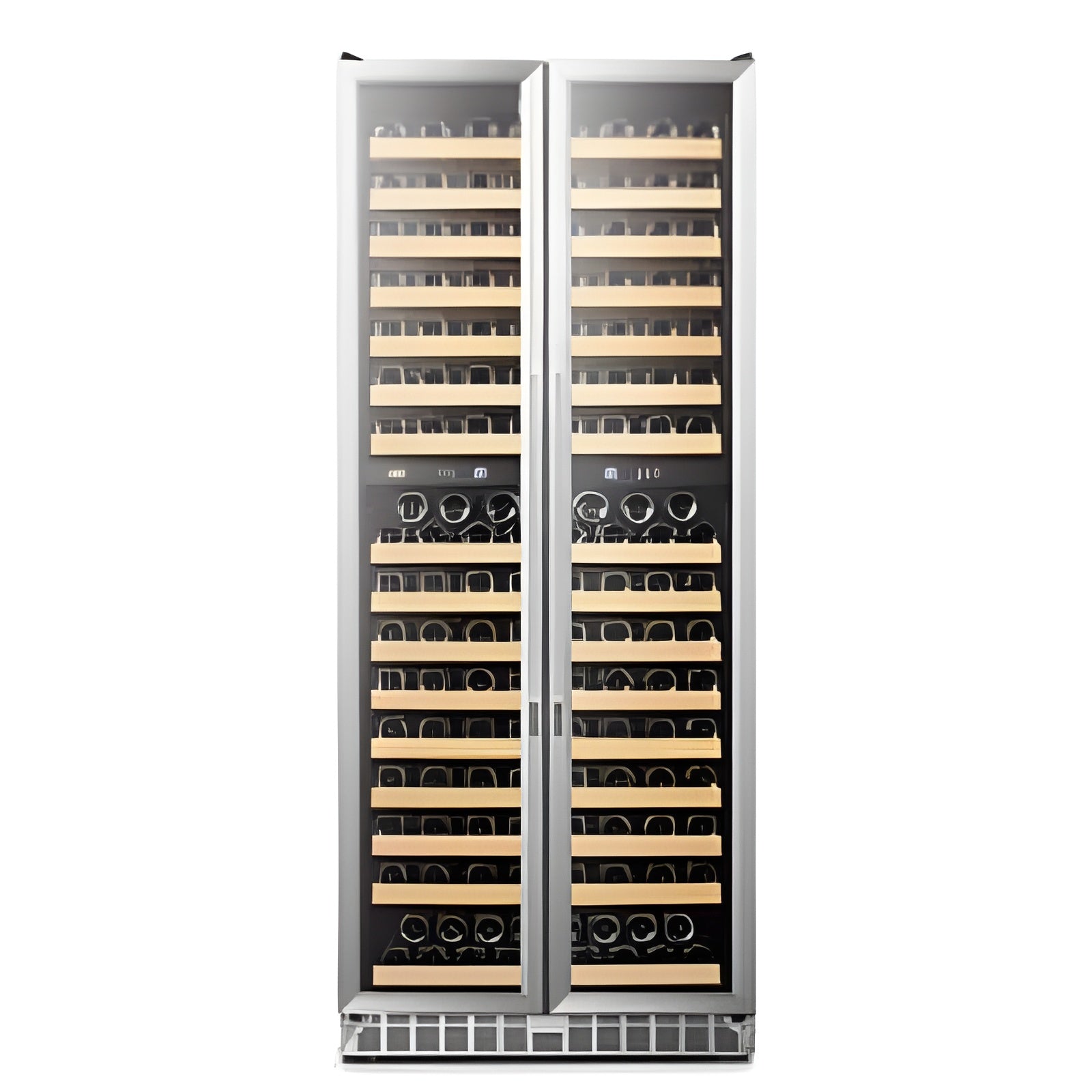 Elevate your wine storage with the Lanbo Luxury 289 Bottles Dual Door Wine Cooler - LW328SD, a masterpiece designed for discerning wine enthusiasts. This dual-zone wine cellar offers ample space to house your cherished wine collection, ensuring each bottle is stored at its optimal temperature for peak enjoyment. Whether you favor robust reds or crisp whites, the dual Low-E tempered glass doors with a sophisticated French design not only add elegance to your space but also protect your wines from harmful UV light, preserving their rich aroma and flavors