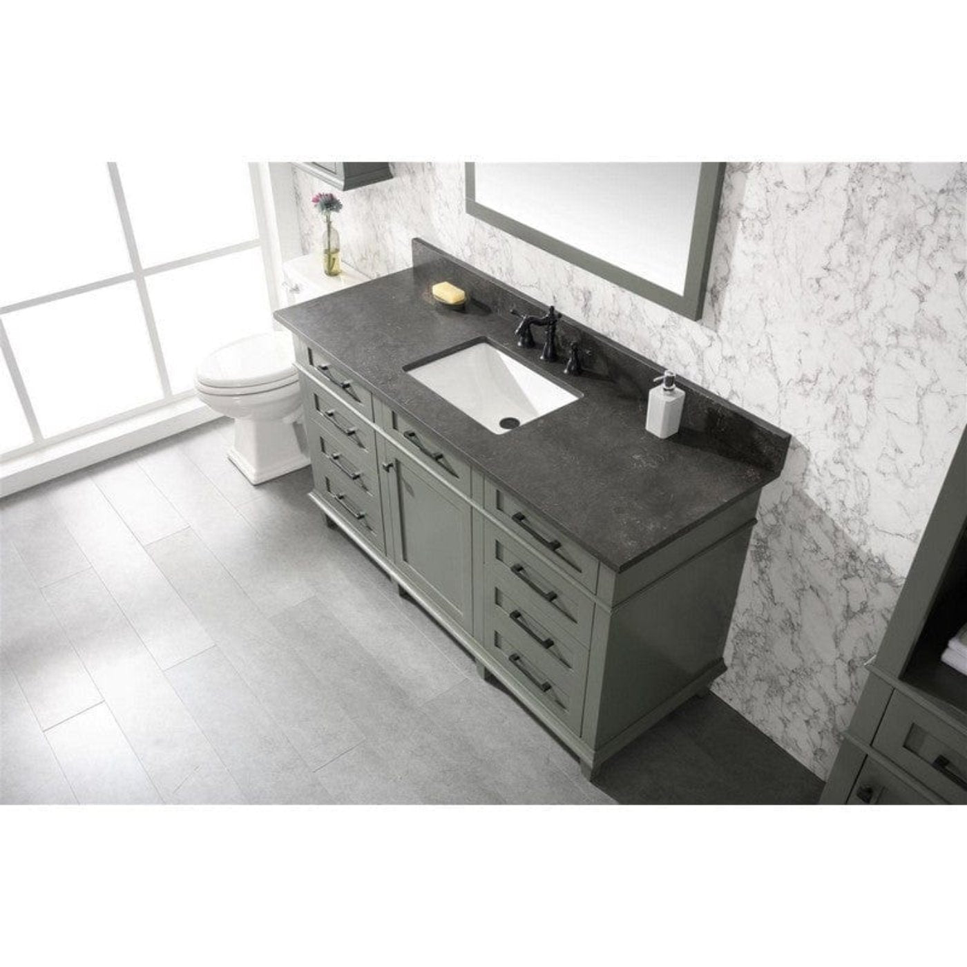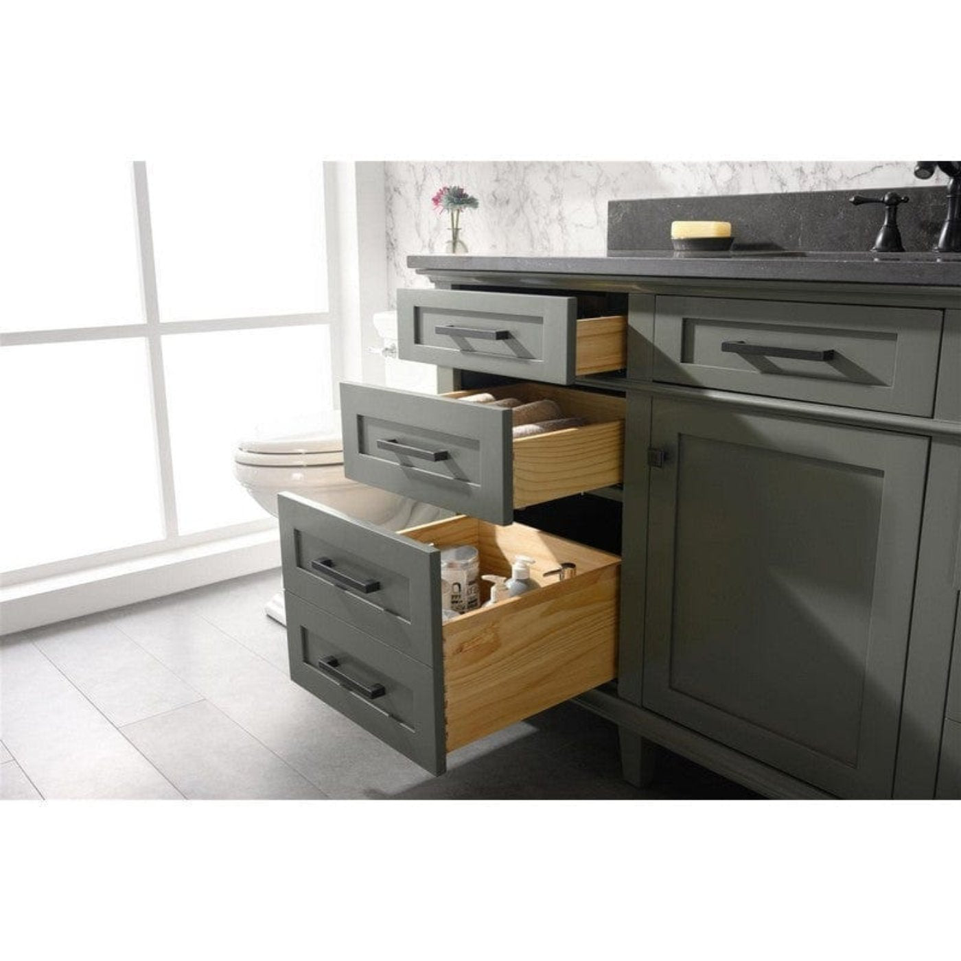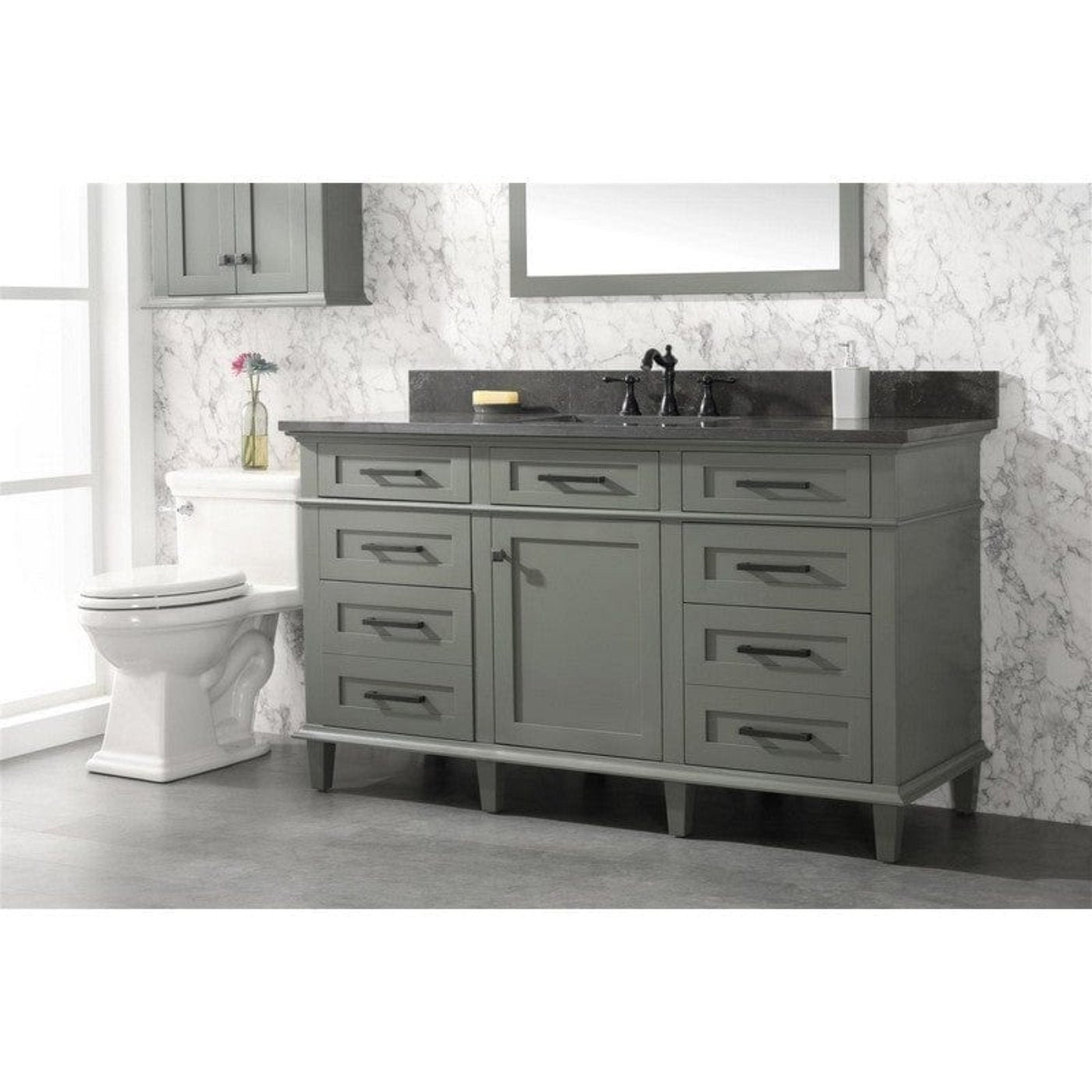 A: The Legion Furniture WLF2160S-PG vanity measures 60 inches in width, 22 inches in depth, and 34 inches in height, providing plenty of space for a single sink and storage.