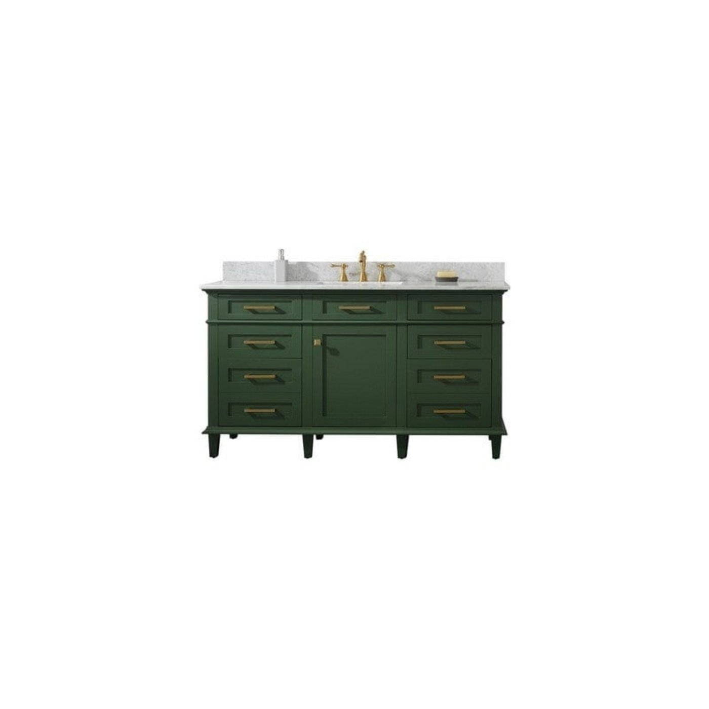 A: The Legion Furniture WLF2160S-VG vanity measures 60 inches in width, 22 inches in depth, and 34 inches in height, offering ample space for a single sink and storage.