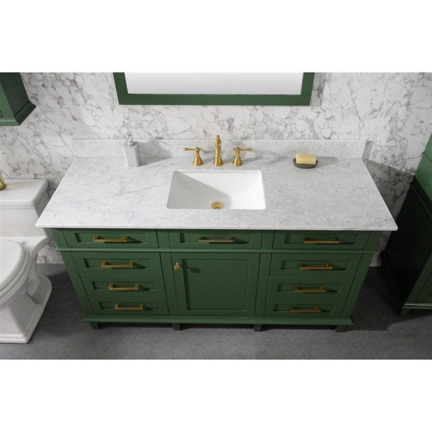 Legion Furniture WLF2260D-VG 60 Inch Vogue Green Finish Double Sink Vanity Cabinet with Carrara White Top