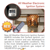 Ignition Options - Choose from the standard match light or the new AWEIS electronic ignition with remote control