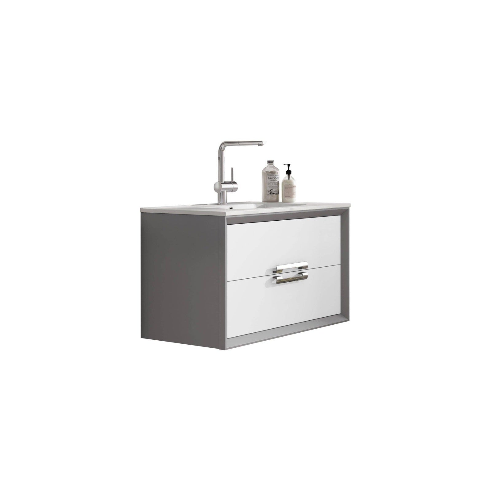 Built to keep toiletries close to hand, it's supplied with two drawers complete with sectioned inner compartments for optimized organization and smart storage. it's fitted with a spacious ceramic basin for ease during washing. And thanks to pre-drilled handles, installing this collection will also be hassle-free. This vanity can blend well with any transitional bathroom creating a chic look. it will make a bold and elegant statement in any home.