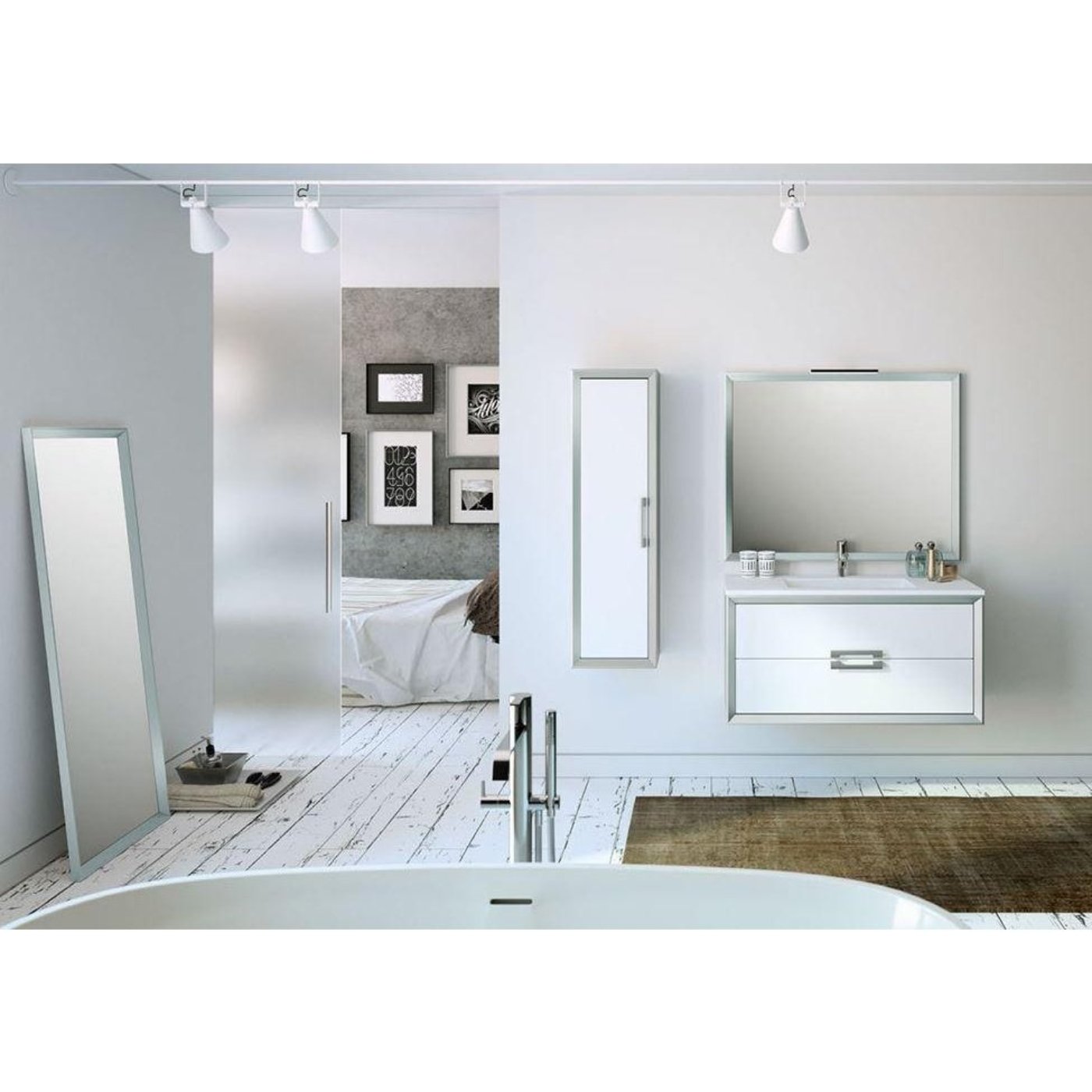 A: A modern, wall-mounted bathroom vanity available in White, Black, Gray, or White with Silver accents, designed to elevate any bathroom's style.