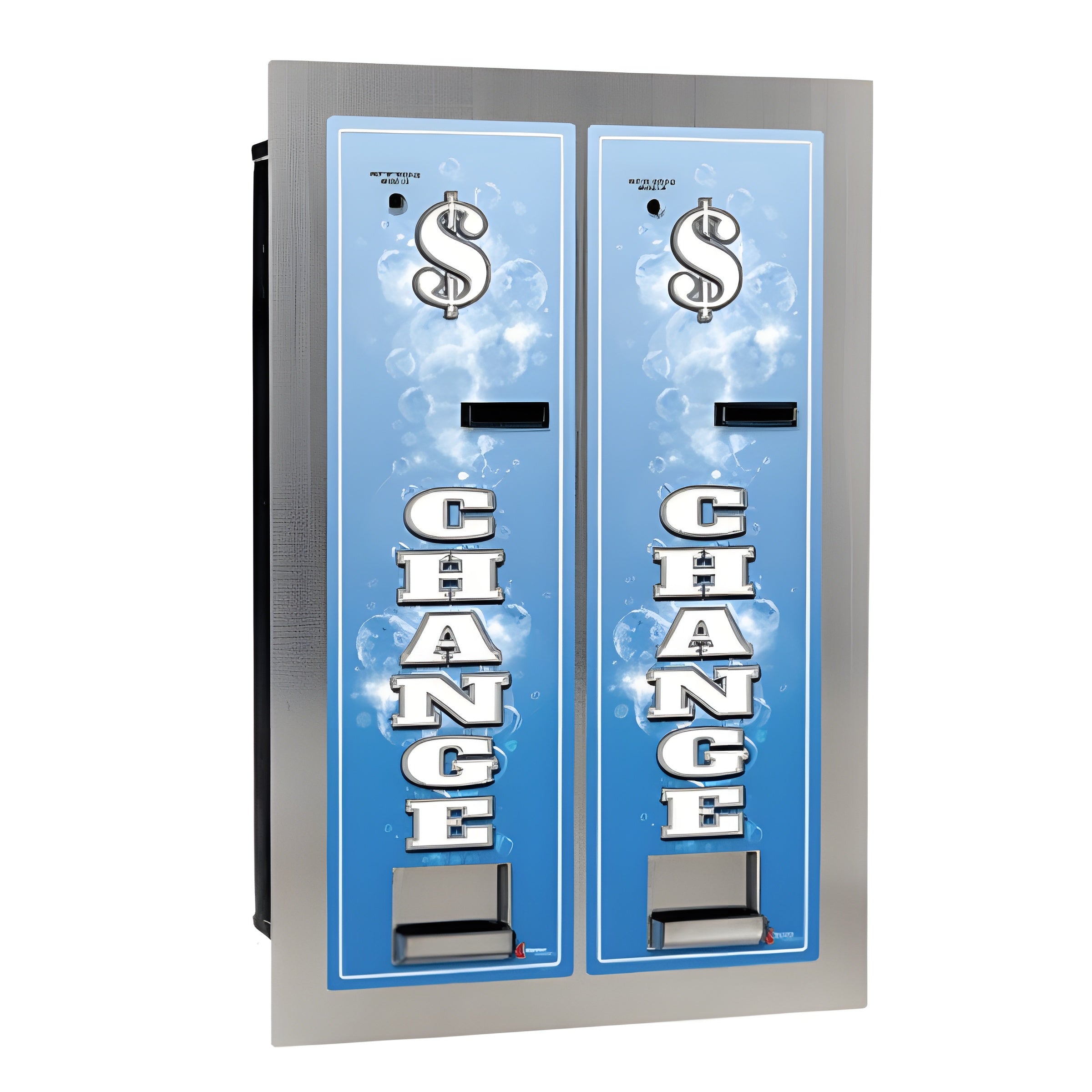 MC500RL-DA Standard Change Machine - The MC500RL DA dual bill to coin change machine was designed for simple function coin dispensing. The machine is equipped with two bill acceptors, and two steel 3.2K coin hoppers. This is a total of 6,400 coins! ($1,600 capacity) The solid welded steel cabinet has a stainless steel faceplate for added security. These machines make excellent quarter or token changers and are ideal for use in small commercial coin laundries and car washes. The unit also offers a variety of plug & play options to help you customize the machine to your specific business needs. For example, the dual acceptor or "-DA" models feature the Dual Redundancy Feature - that allows communication between both bill acceptors and both coin hoppers. That means the machine can dispense from either coin hopper in the case that one of the bill acceptors were to become jammed. That's true built-in back-up!Standard Change Makers MC Series currency changers provide the ultimate in flexibility in a low-cost solution.