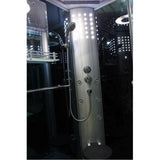 The Mesa WS-802L steam shower has tempered blue glass and a nickel interior control panel. Available as both a left and right-side unit, the WS-802L is a perfect steam shower for smaller bathrooms. It features chrome columns and hardware, a sliding glass door, and a fold-up seat for additional space. The sleek design and slightly curved front add style and modern flare to any bathroom.