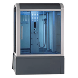 The Mesa Yukon 501 steam shower with jetted tub provides a spacious free-standing design. This fully loaded 59" x 33" combination steam shower features an upgraded 3KW high output steam engine, 6 acupuncture body jets, and 6 whirlpool jets giving you an unmatched therapeutic sauna experience. You and a partner can indulge yourself in a state of complete relaxation and tranquility in the expansive jetted tub. The sleek curves and tinted blue glass of the Yukon 501 make it a customer favorite.