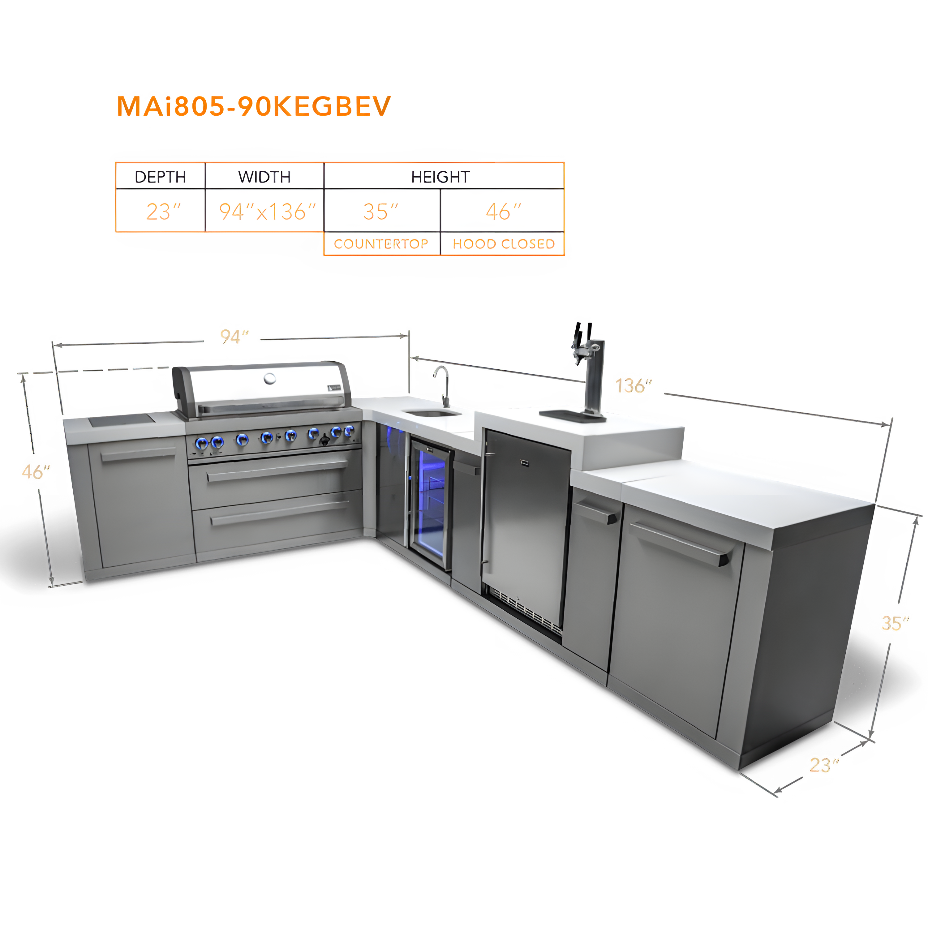 Mont Alpi 6-Burner Island With a 90-Degree Corner, Kegerator and Beverage Center - MAi805-90KEGBEV Features: