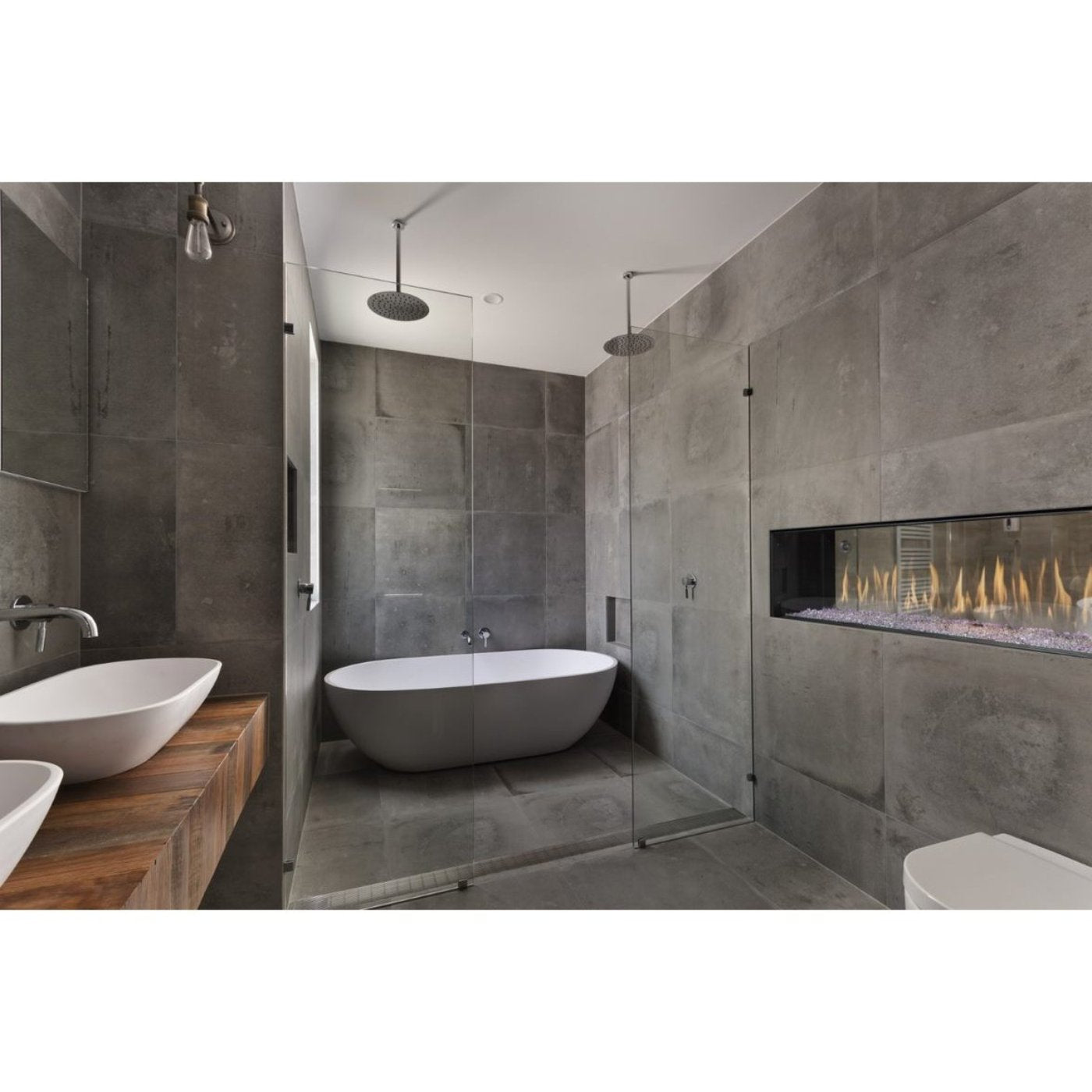 Featuring a sleek contemporary design with frameless double glass, this fireplace not only provides stunning aesthetics but also eliminates the need for a safety screen. With finishing materials that can be directly attached to the fireplace, you can create an uninterrupted and visually striking focal point. This commercial-grade, zero-clearance fireplace is also compatible with home automation systems, making it a versatile and convenient choice.