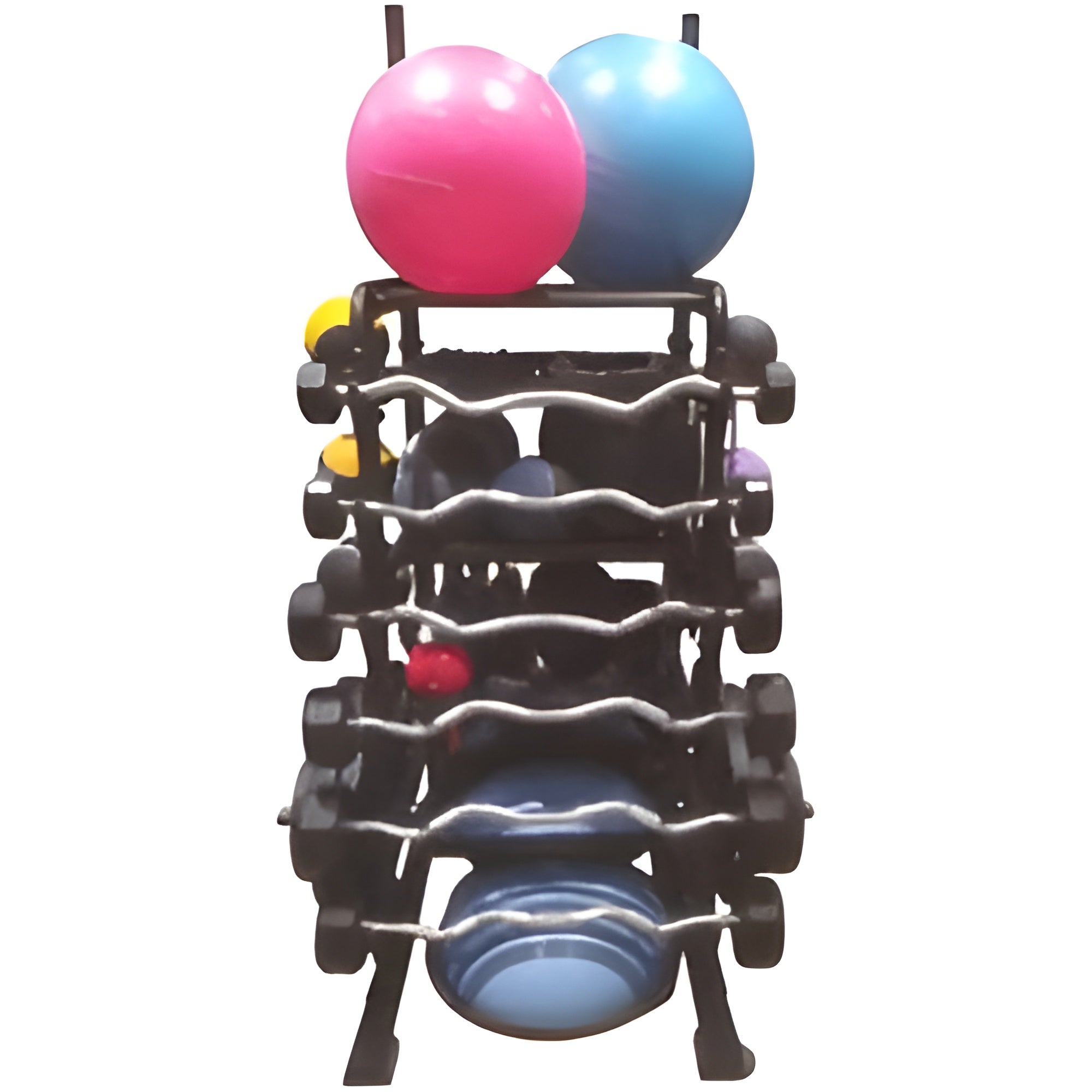 A: It offers superior organization, maximizing space while keeping your fitness equipment easily accessible, durable, and neatly arranged.