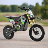 This bike comes with a front hydraulic fork suspension and a rear shock absorber, a set of disc brakes, and knobby air-filled tires made for rugged terrain. The MotoTec Pro Electric Dirt Bike has an endurance of around 9 miles in each charge.