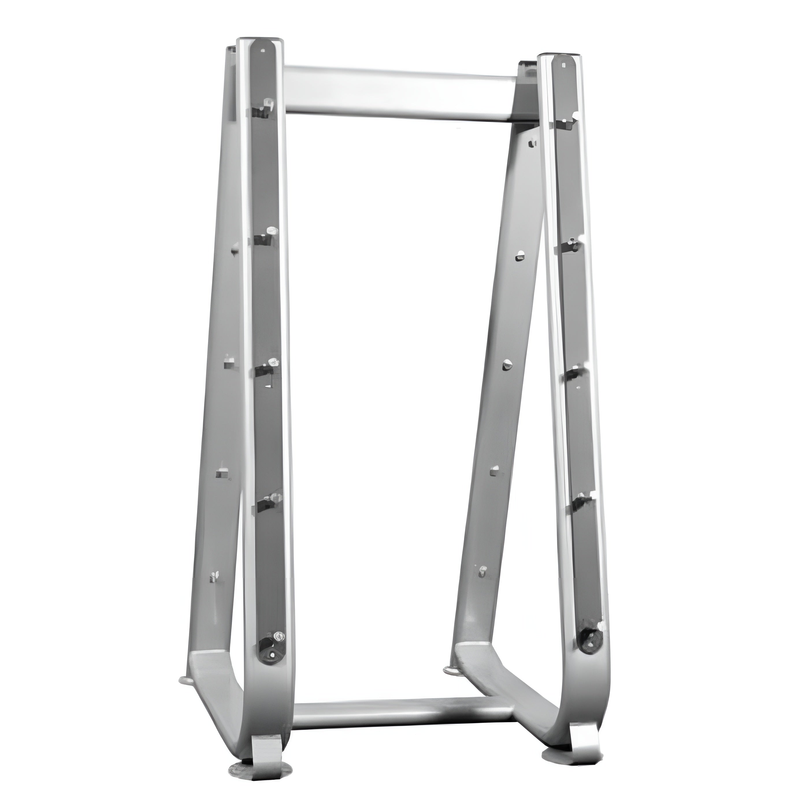 A: A durable and space-efficient rack designed to securely hold barbells, ideal for organized storage in gym environments.