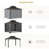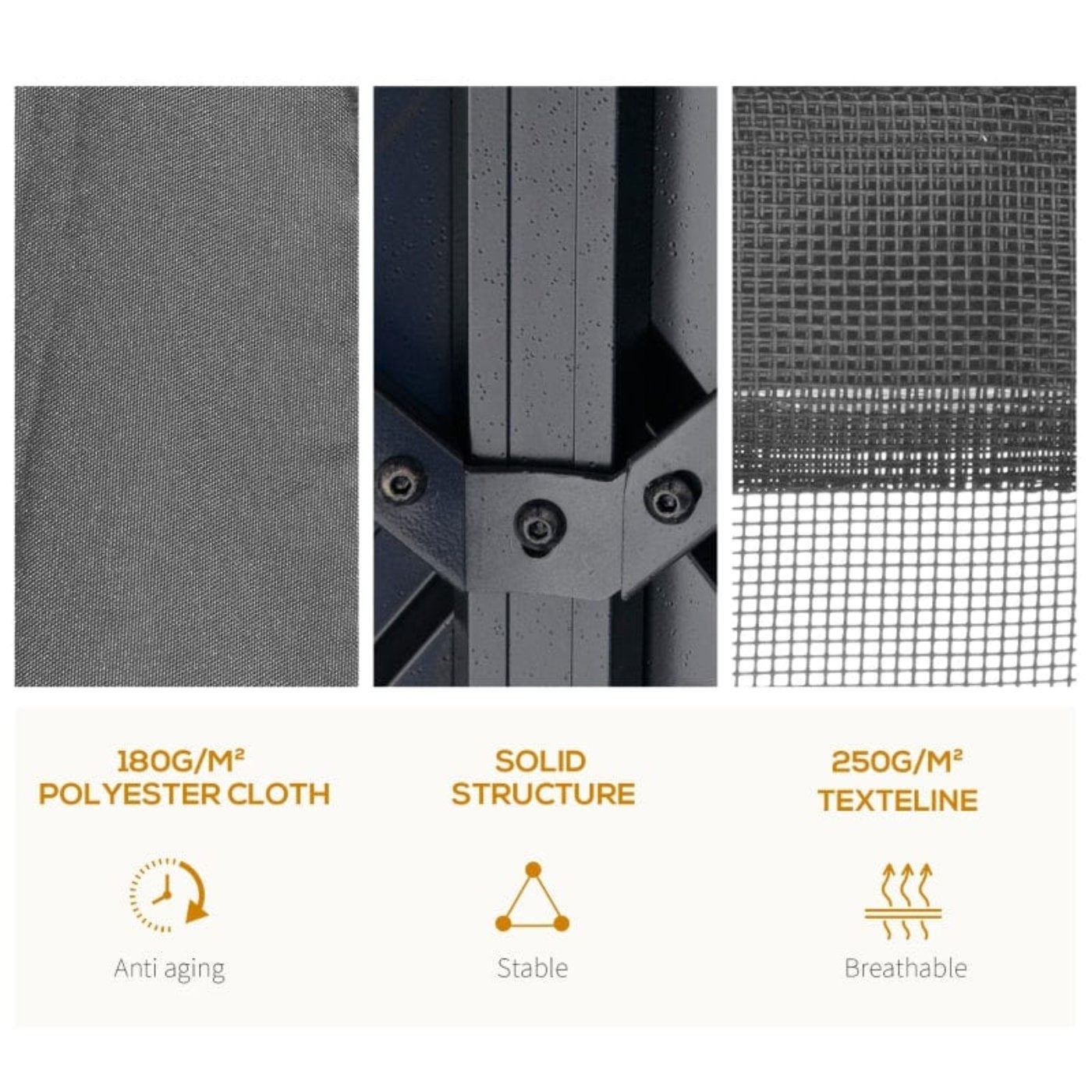 A lightweight yet heavy-duty gazebo. Its aluminum frame is water-safe and portable. Let the good in, keep the bad out. Use the four zip-on mesh nettings and privacy curtains to master the elements. Stop sunburns and stay dry by blocking UV and rain. Redirect wind and keep fresh air with its stylish two-tier steel roof. The party doesn't end at sundown; hang lights, lanterns, or decorations from the ceiling. Firmly plant your plans on any surface, Outsunny has you covered.