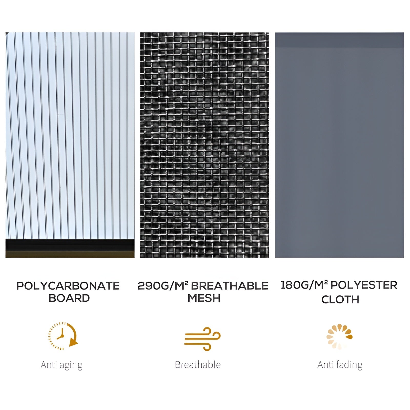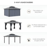 Looking for an easy-to-carry outdoor option for your garden party or poolside plan? Outsunny has the 10x12 hardtop gazebo that's got you covered. The four zip-on mesh nettings and curtains let you master the elements. The party doesn't end at sundown; hang lights or lanterns from the ceiling. Keep your plans firmly planted on any surface with twelve stakes and eight adjustable anchor bolts. Made of easy-to-carry, nonrusting aluminum & see-through polycarbonate, this is the cabana that can.