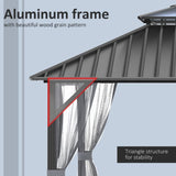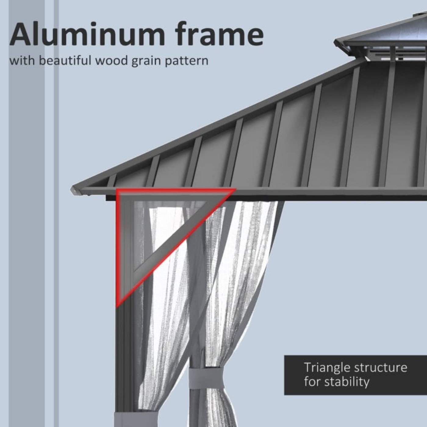 This two-tier patio gazebo canopy by Outsunny is your best choice for any outside activities, family parties, and gatherings. This wood grain outdoor canopy elevates your backyard, patio area, or other outdoor space, adding an element of comfort and elegance. The pergola includes nylon curtains, which is a perfect choice when you want to beat the summer heat and enjoy your time outdoors. This beautiful hardtop cabana is designed for long-term service. Get out and get Outsunny!