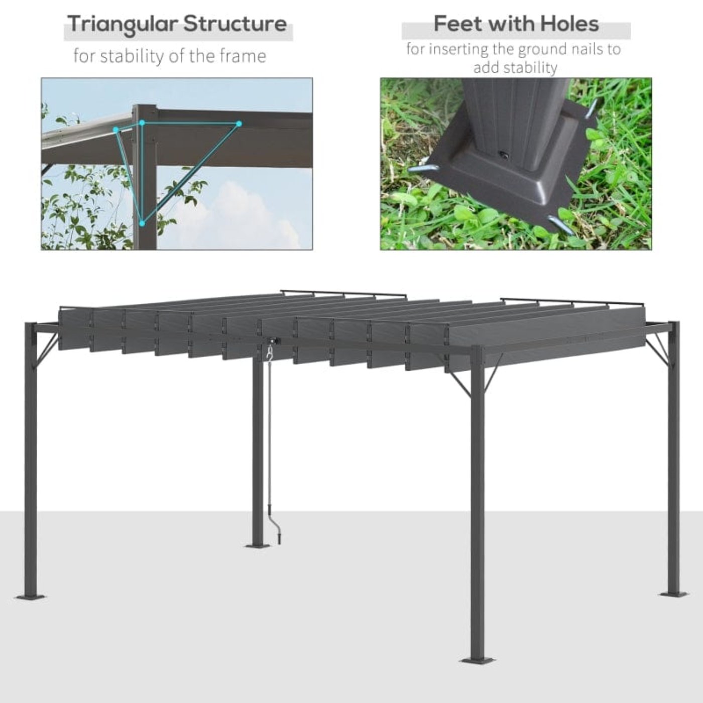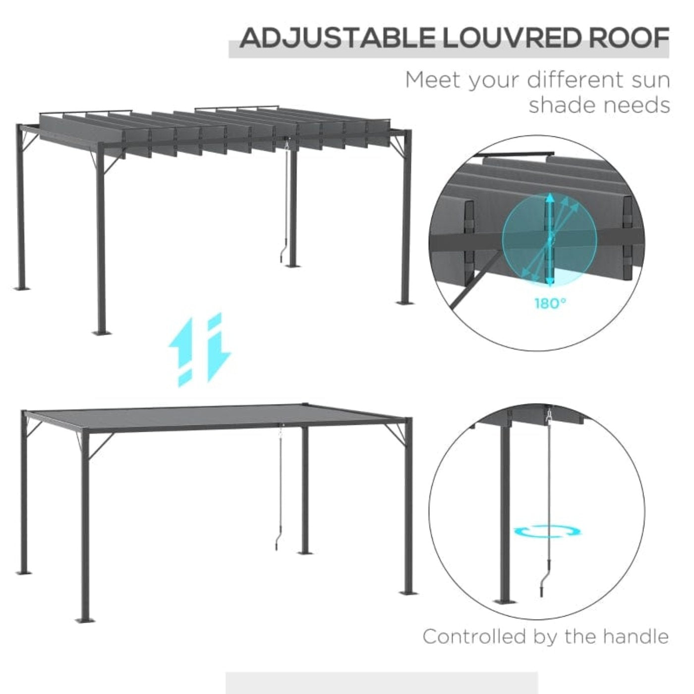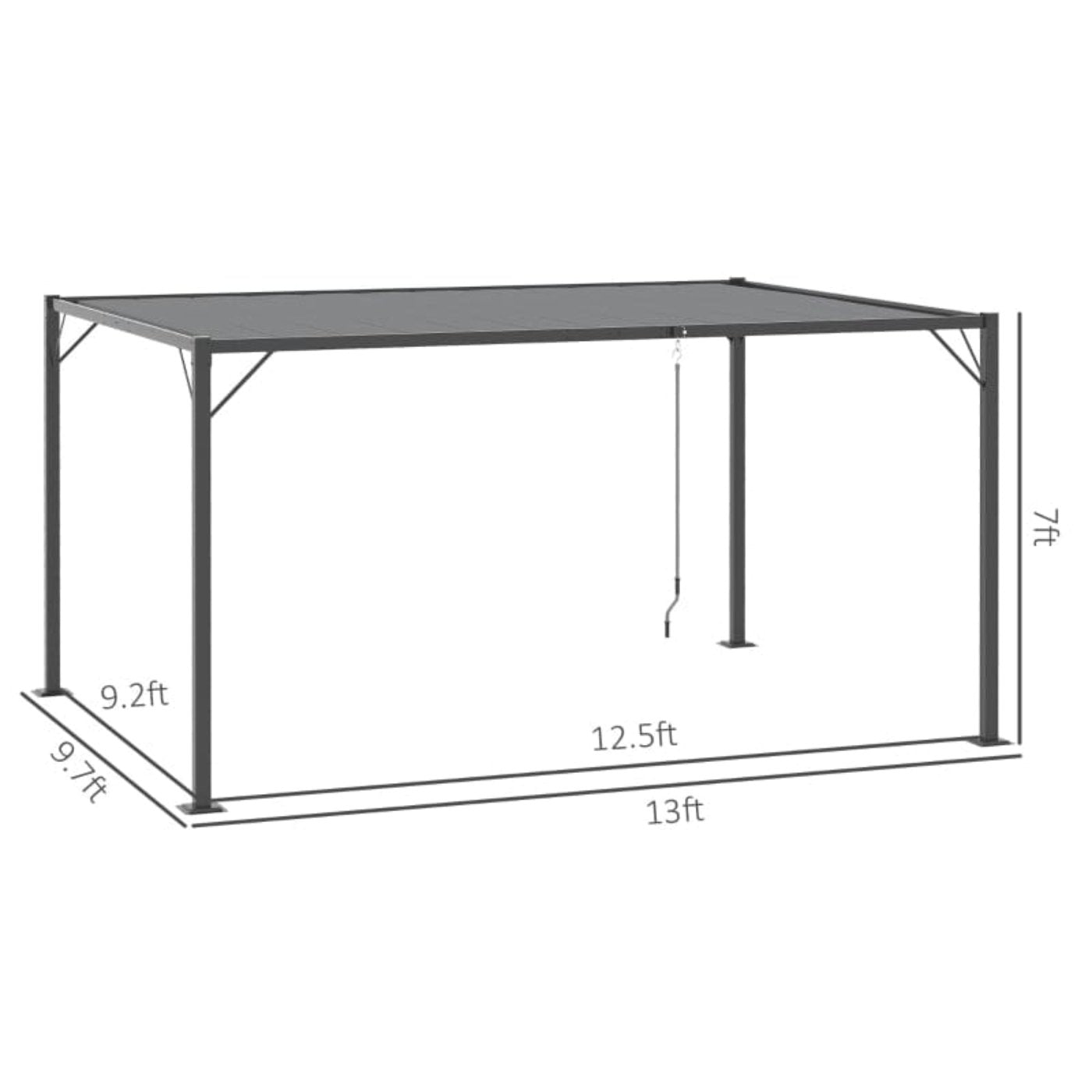 Offering a clever, modern charm Outsunny invites you to bring decor to the outdoors. This 13' x 10' pergola with canopy allows you to entertain a crowd. Its hybrid aluminum & steel frame gives you the best of both, with water resistance and heavy-duty structural support. The pull-string "blinds like" louvered roof stops sunburns or lets the sun shine. Featuring sixteen support stakes for mounting it to soft ground; with this attached pergola, your plans are firmly set.