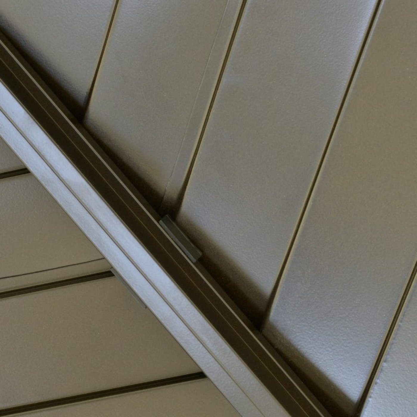 A: The gazebo has a strong steel frame for stability and durability, with a UV-resistant and weatherproof polycarbonate hardtop roof for protection against sun and rain.
