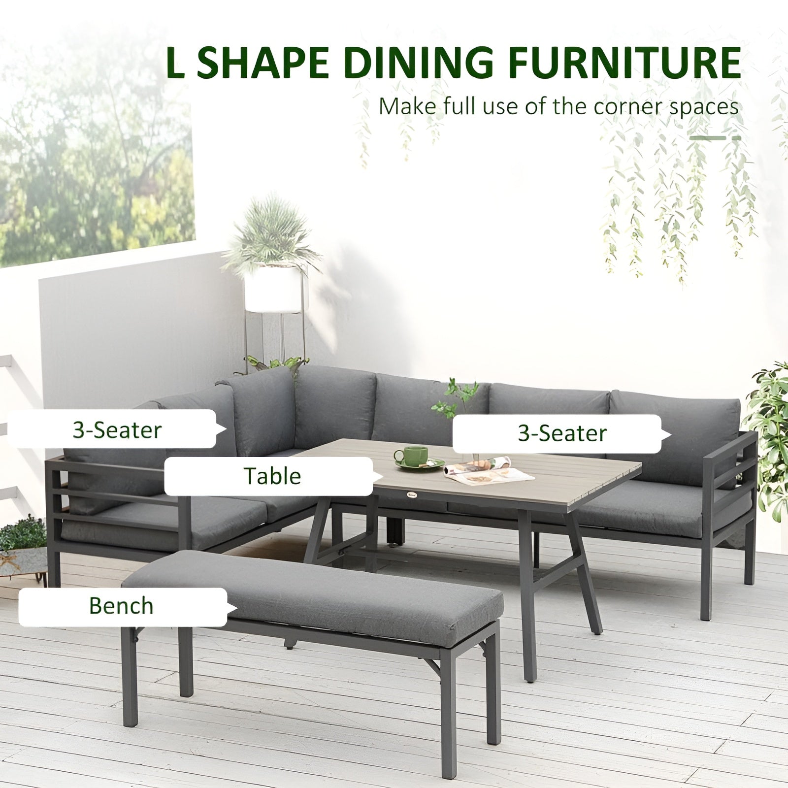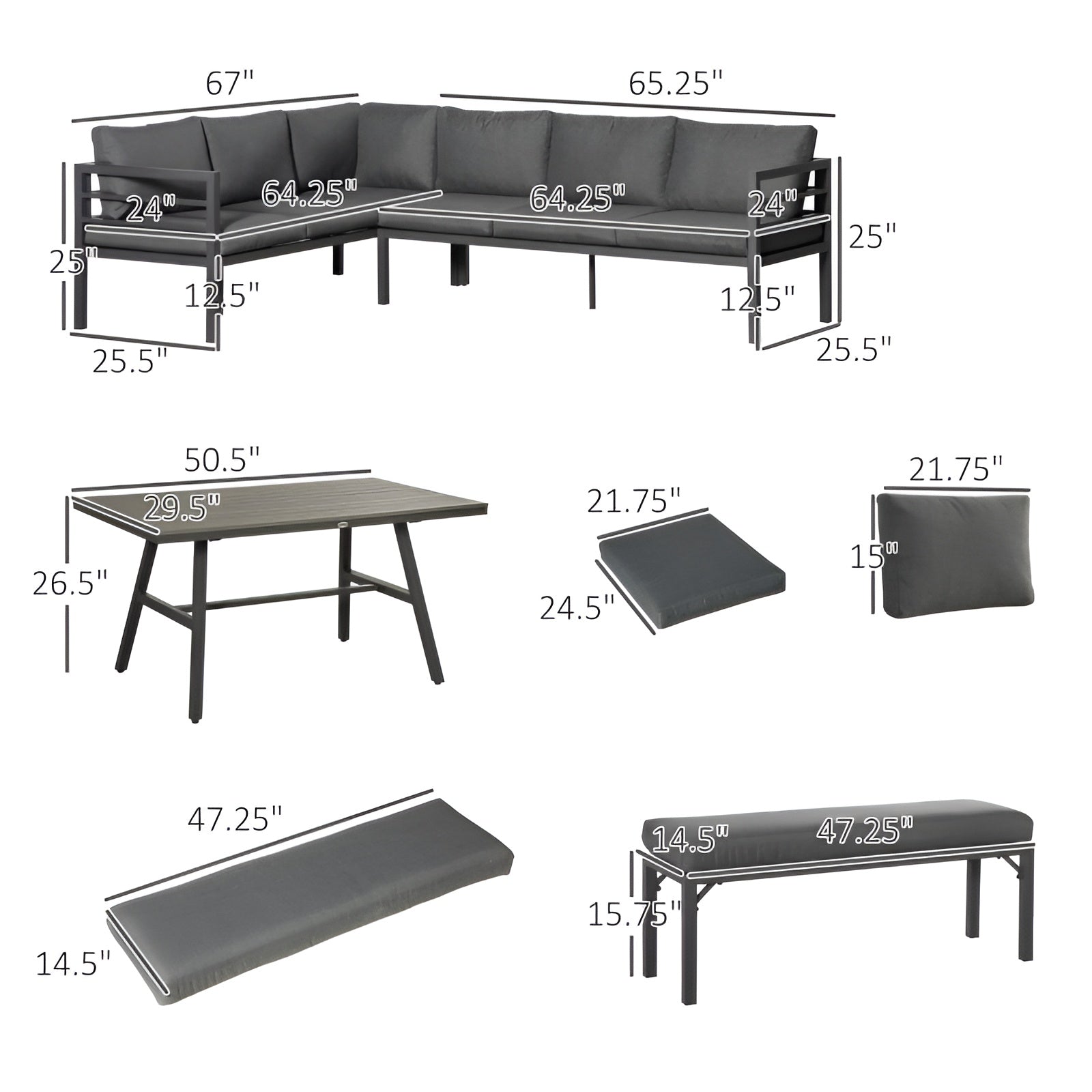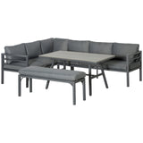 Bring comfort and leisure to your yard, garden, and patio with this contemporary 4-piece seating set by Outsunny. This beautiful garden set consists of two 3-seater, a long bench and a dining table, which can seat up to 8 people. Comfy backrest and seat cushions guarantee comfortable seating. A fantastic addition to your garden and outdoor areas, you'll love inviting friends over to relax and dine with you.