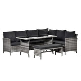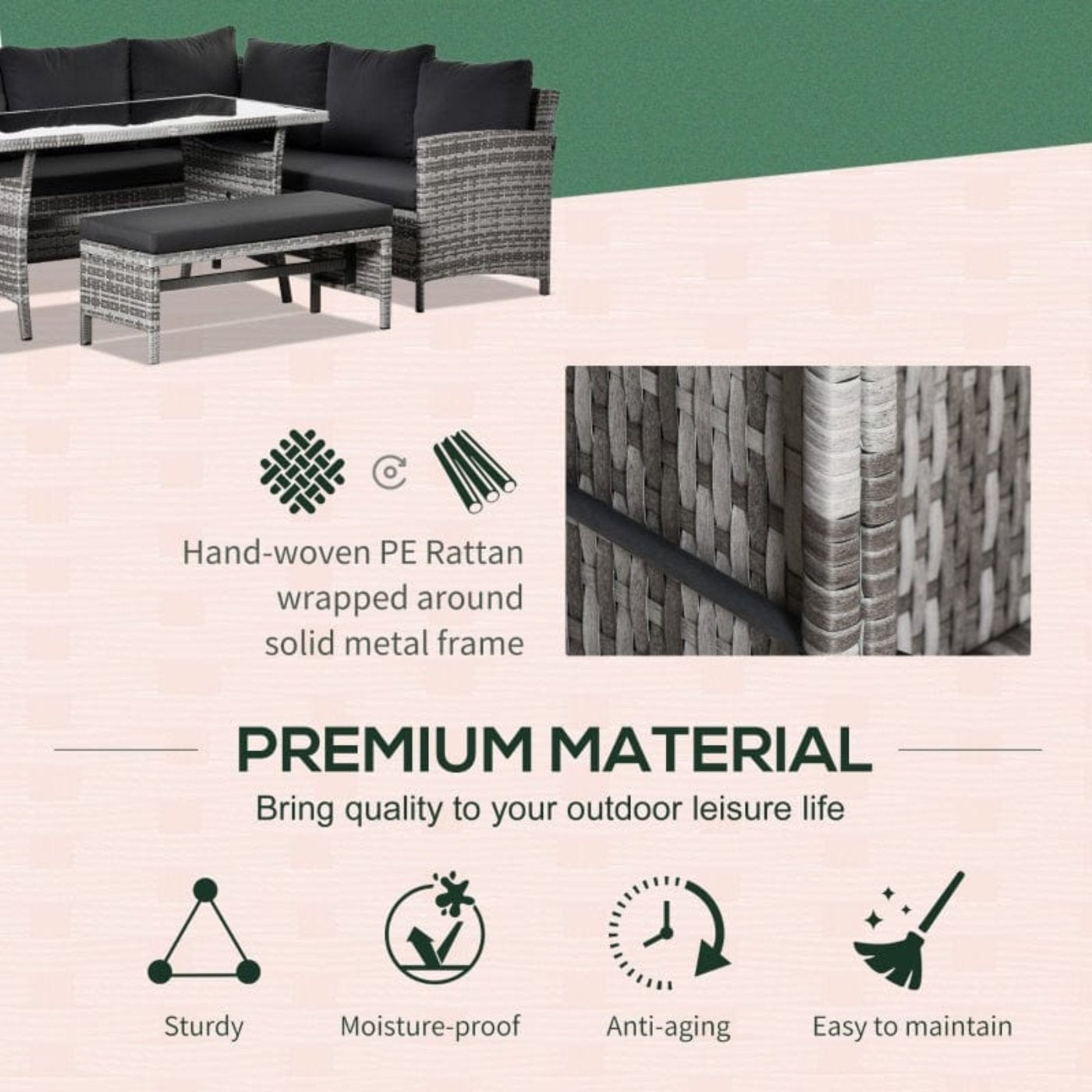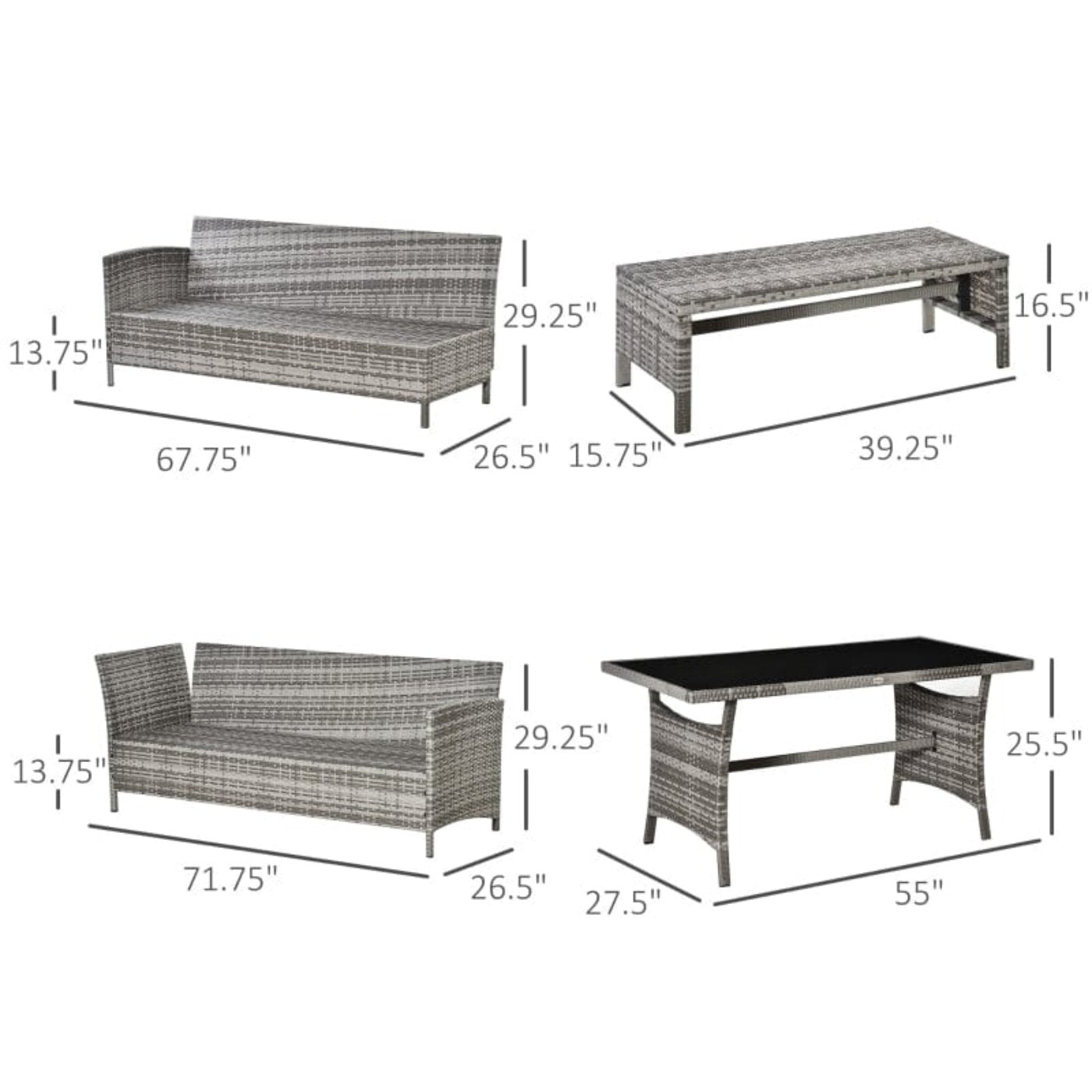Brighten your backyard with our Outsunny's 4 piece patio sofa set. This set can withstand years of reliable outdoor use, built with a metal frame covered with PE rattan wicker. You can use the dining table and matching bench individually or with the two sofas to create the perfect dining experience. The wide seat design of the patio sofas for outdoor is for 7-8 people. Decorative and functional, the Outsunny furniture set creates an inviting setting that you and your family will use all year.