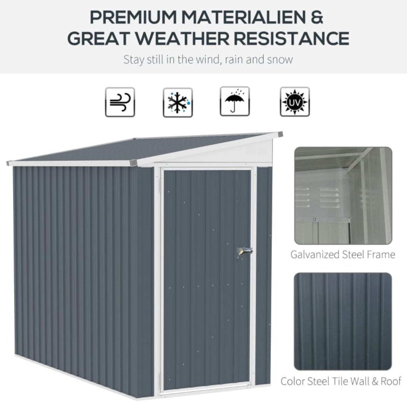 A: Yes, the shed is made of weather-resistant galvanized steel that resists rust, corrosion, and harsh outdoor conditions, ensuring long-lasting durability.