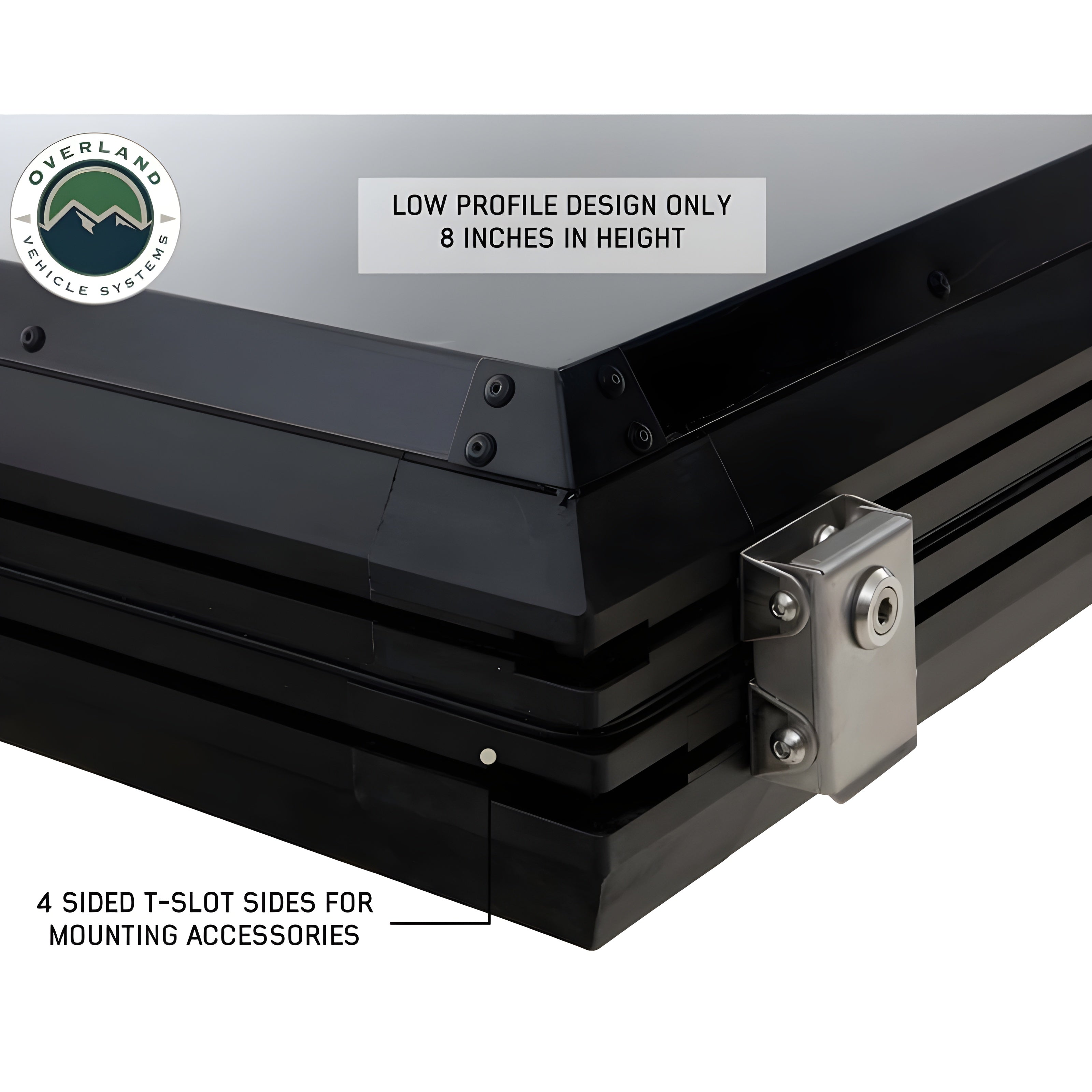 The Aluminum Body comes standard with T-slot accessory channels to help mount recovery gear and many other smaller lightweight accessories. Included are also two standard cross bars, which are fully compatible with Thule and Yakima accessories, to help carry extra gear for your adventure. The cross bars are not expandable, but they can be removed if need be. The included adjustable interior pop-up strut provides additional support for when weight has been added to the cross bars.