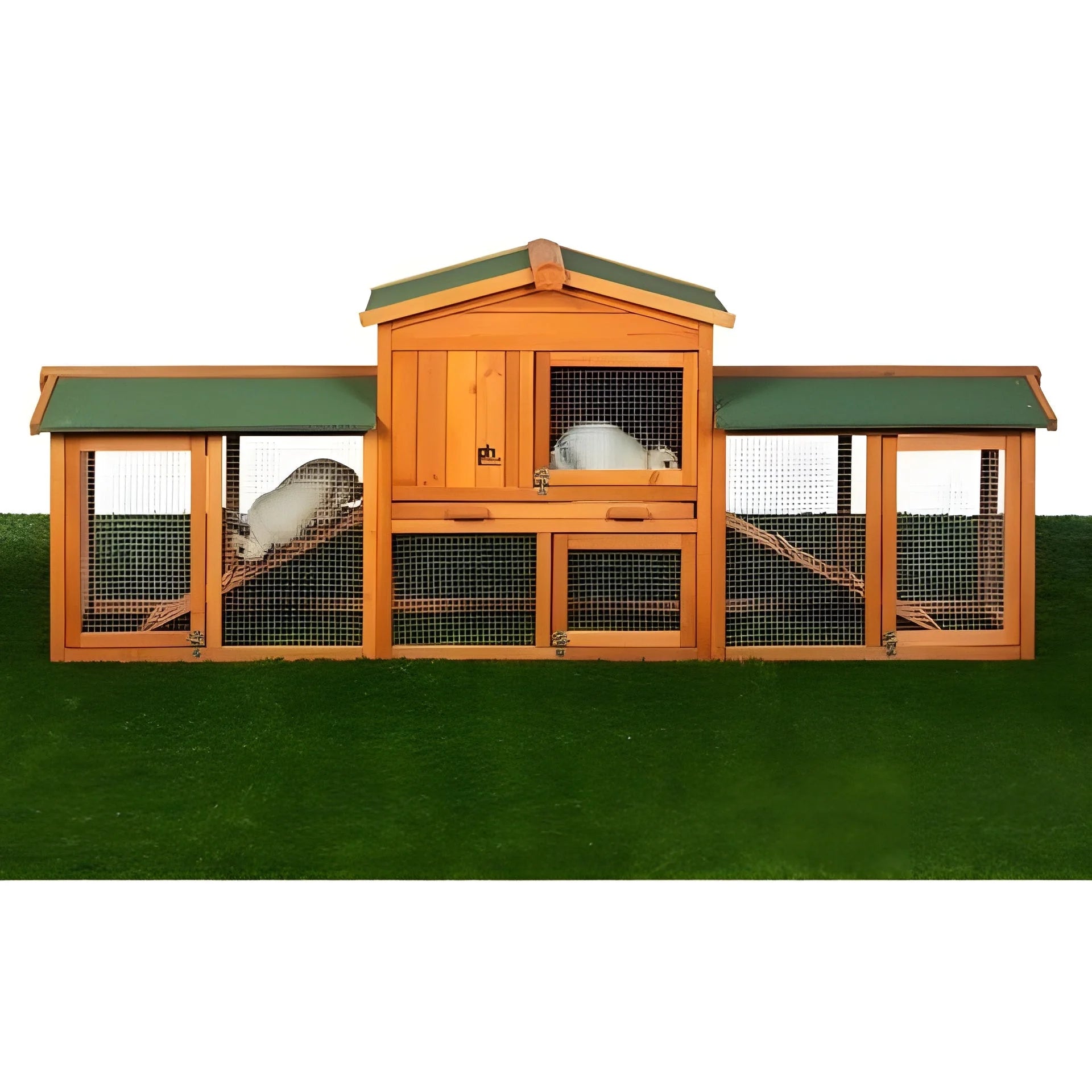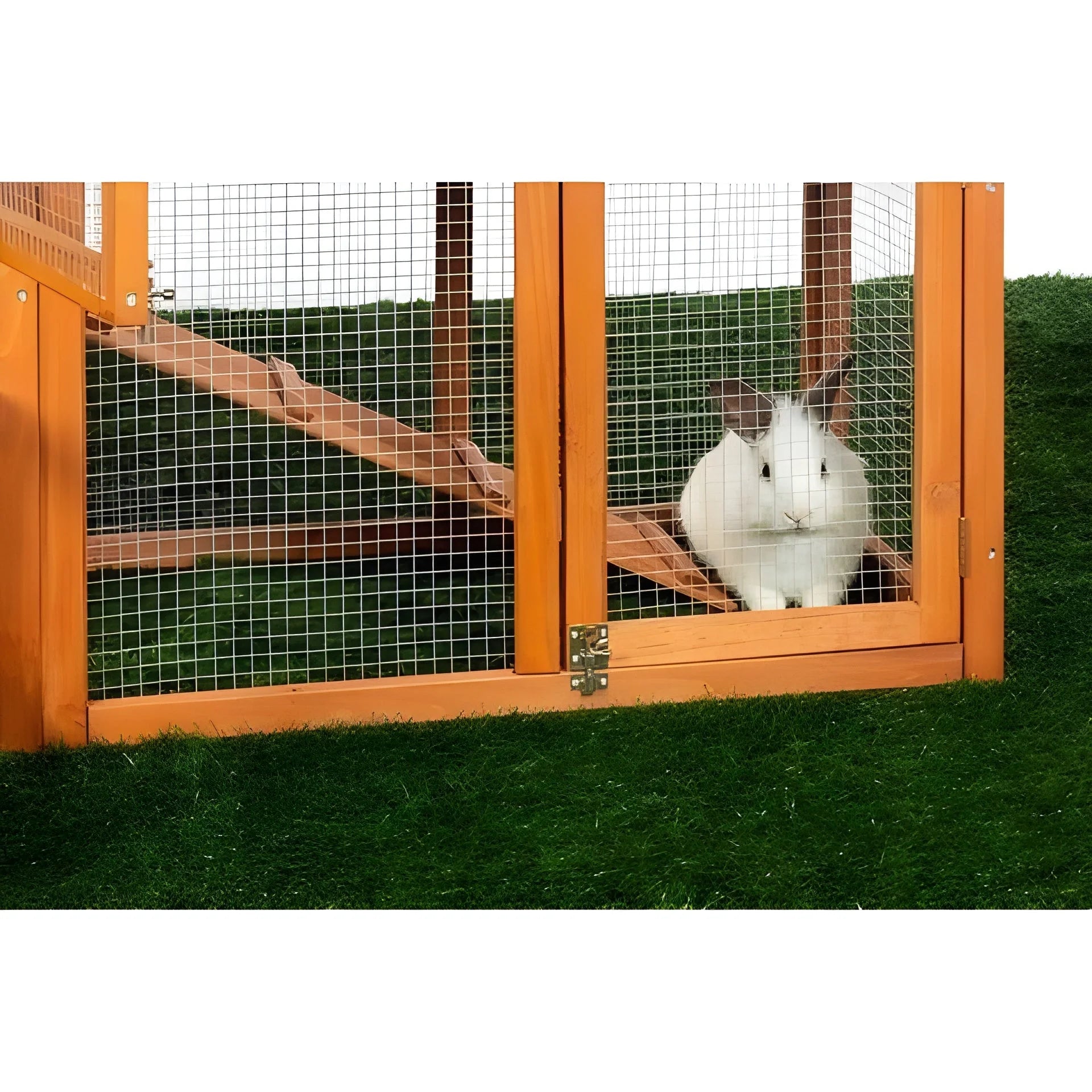 Crafted from durable materials, including galvanized wire mesh to resist rust and weather conditions, and asphalt-coated roof panels to shield against the elements, this hutch is built to last. Four doors with secure barrel bolt locks allow easy access to all parts of the enclosure, while a removable galvanized tray floor simplifies cleaning and maintenance.