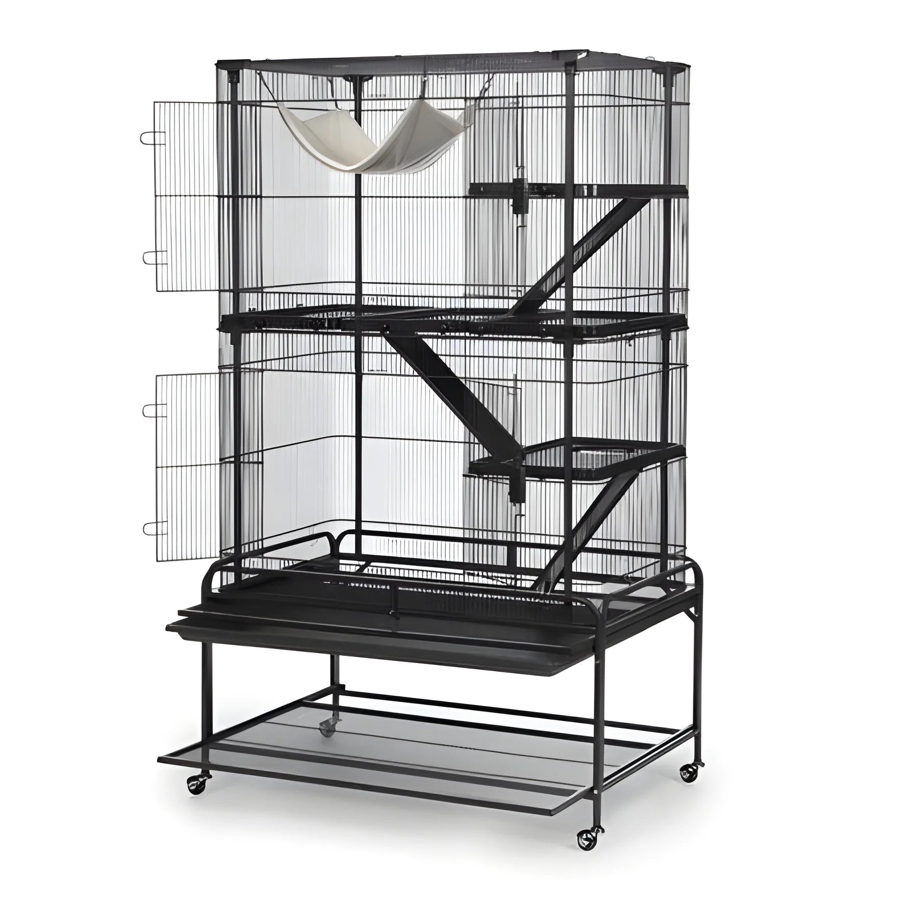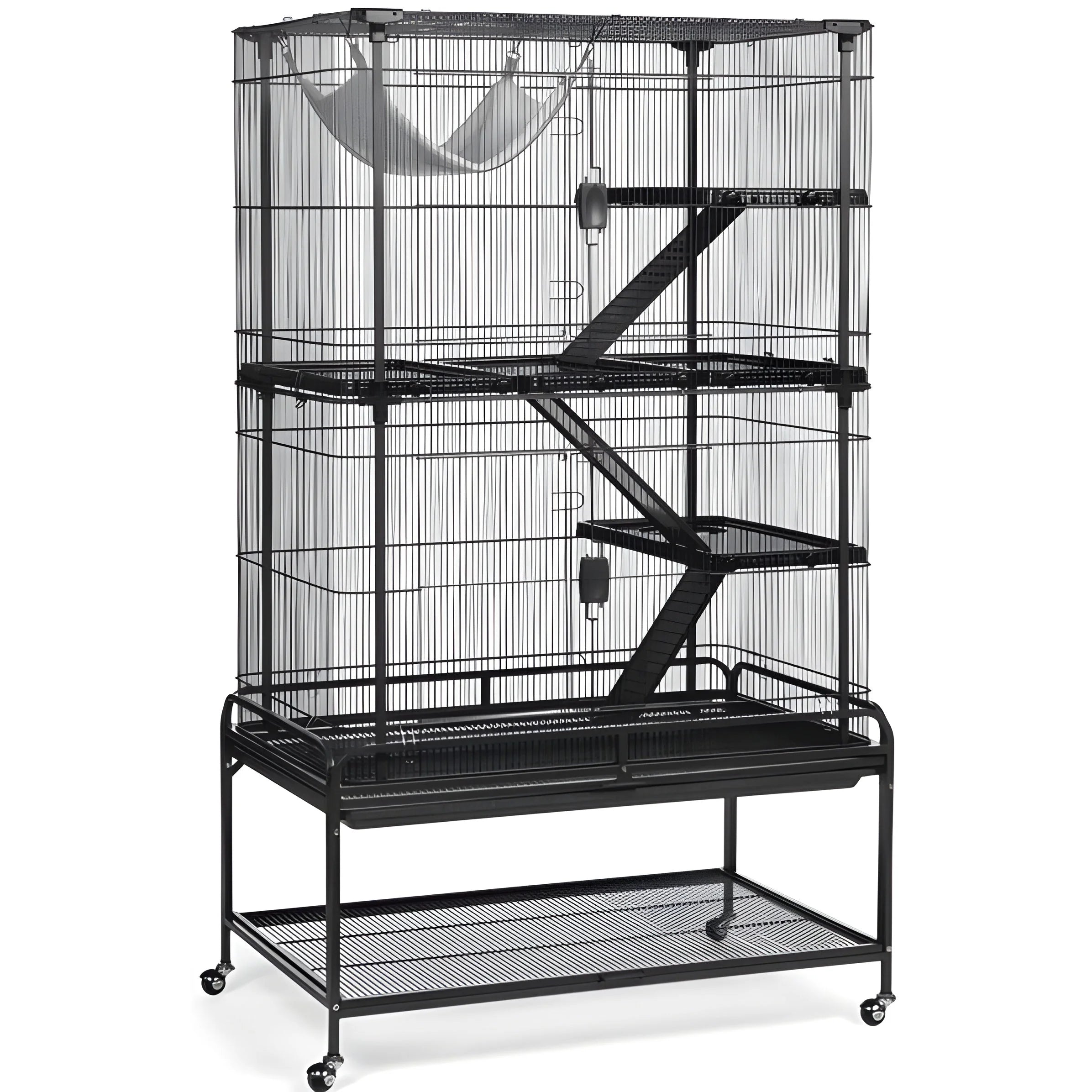 | Includes | 5 platforms, 3 ramps, plush hammock, storage shelf, rolling casters, removable grille, and tray |