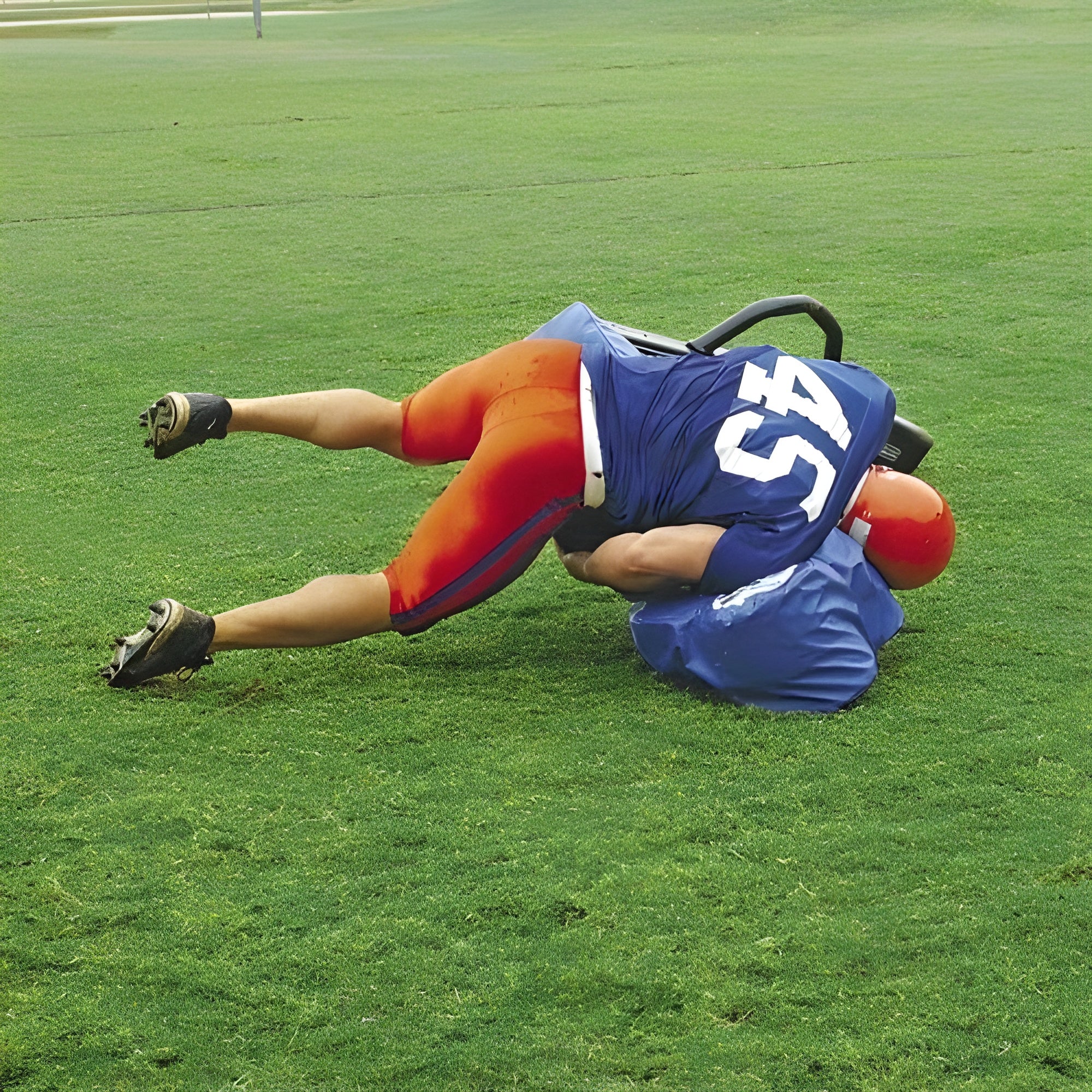 A GREAT TACKLE Some offenses are going to throw 70+ plays a game at your defense, thus tackling and conditioning have never been more important. Good, consistent tackling is the key to stopping offenses, and ripping through the S-Pad with authority in practice translates to fewer spin-offs in the game. The metal S spring is surrounded by foam, so there’s no metal behind the player. The S-Pad has a protective two-part cover that is removable for storage.