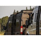 Our brand new RAM Promaster ladder bolts directly to our new DRIFTR series roof rack. Our ladder has steps that are deeper and flatter than anything on the market, giving you the ability to walk on up and down the ladder barefoot without killing your feet. We also have special notches on the end of each step for extra traction in muddy or wet conditions.