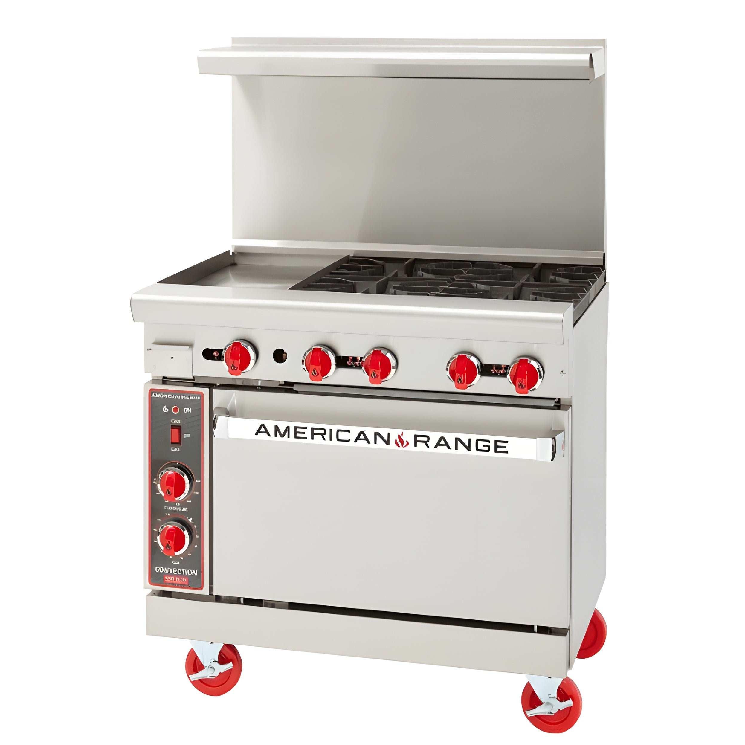A: The American-Range 36-Inch Restaurant Range with Convection Oven AR-6-C is a commercial-grade cooking appliance designed for high-performance kitchens. It features a 6-burner cooktop with powerful burners and a convection oven, providing versatility and efficiency for professional chefs and culinary enthusiasts.