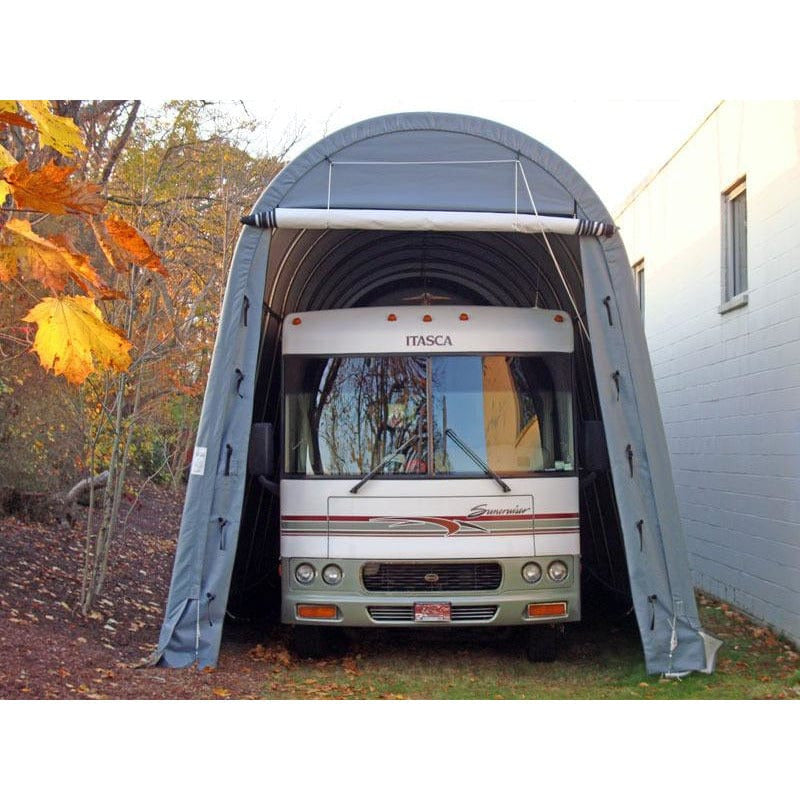 This product comes with a 10 oz. cover that is built to withstand the harsh elements of weather. The double zipper doors on either end of the garage allow for convenient drive-thru access. Our frames are made of heavy-duty galvanized steel and come with a cable earth anchor kit to provide extra reinforcement for your structure. Extend the life of your most expensive investments with outdoor protection that lasts.