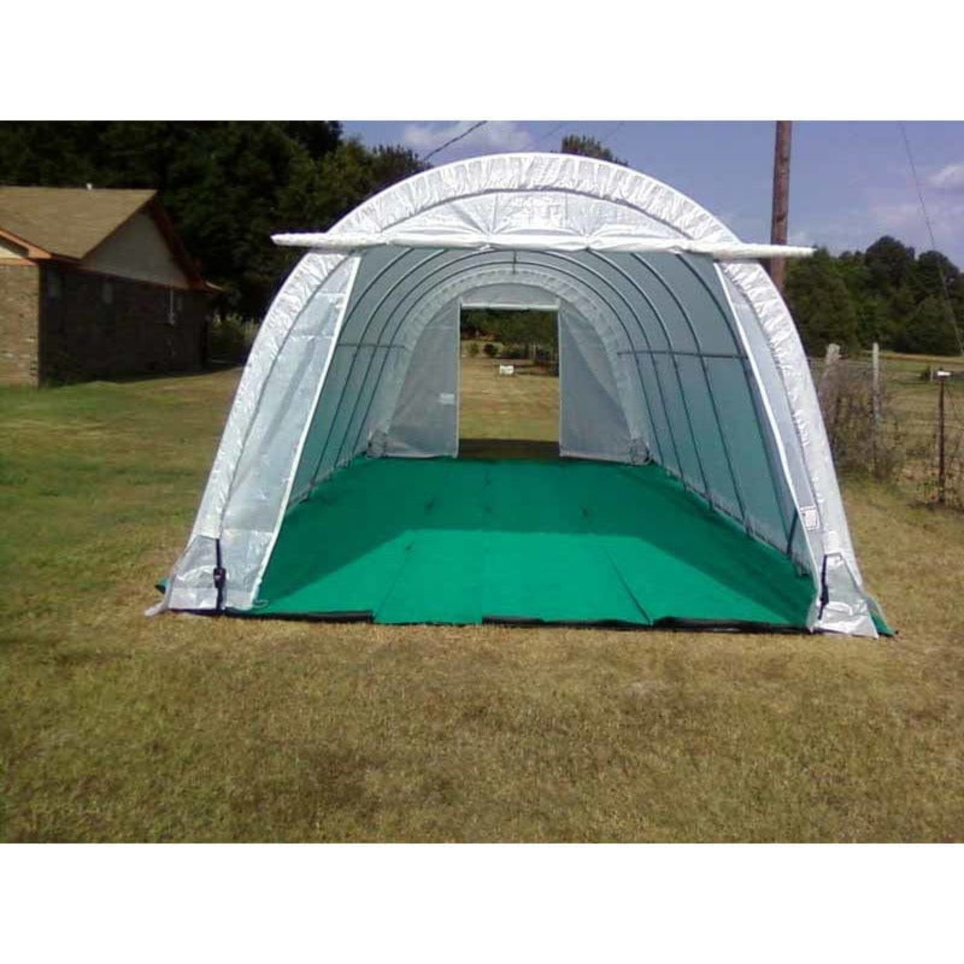 This larger portable storage unit comes with a roll-up door kit, providing you easy and convenient access. The round style gives you additional storage space perfect for hanging plants or large standing plants.