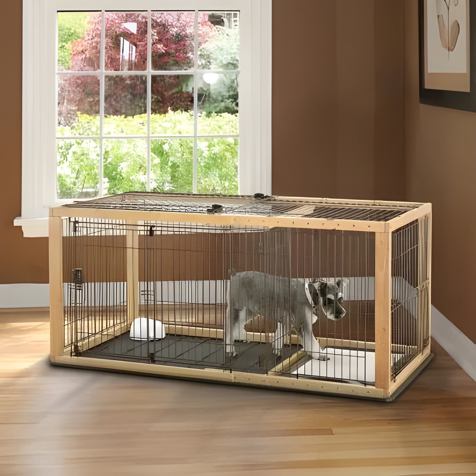 Available in three colors; Dark Brown, Cherry Brown and Natural. Divider and Wire Top are designed exclusively for the Expandable Pet Crate to separate pet's living area and to provide additional security to your pet