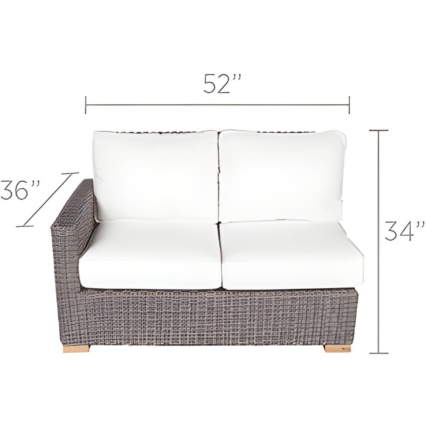 Experience comfort and durability with the Royal Teak Collection Sanibel 2-Seater Arm Right (SB2R). This stylish outdoor seating piece features all-weather wicker elegantly wrapped over a sturdy, powder-coated aluminum frame, ensuring it withstands various climates while maintaining its fresh look. Ideal for relaxing in your garden, patio, or deck, the Sanibel 2-Seater combines modern design with a cozy, inviting feel. Its right-arm configuration makes it a perfect fit for modular setups or as a standalone statement piece.