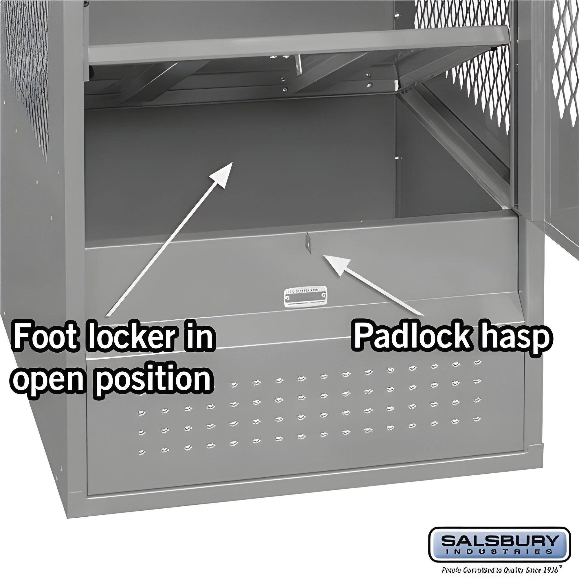 Units feature 2 steel coat hooks, a coat rod and a 14" high foot locker with a hinged lid and recessed padlock hasp for secure storage