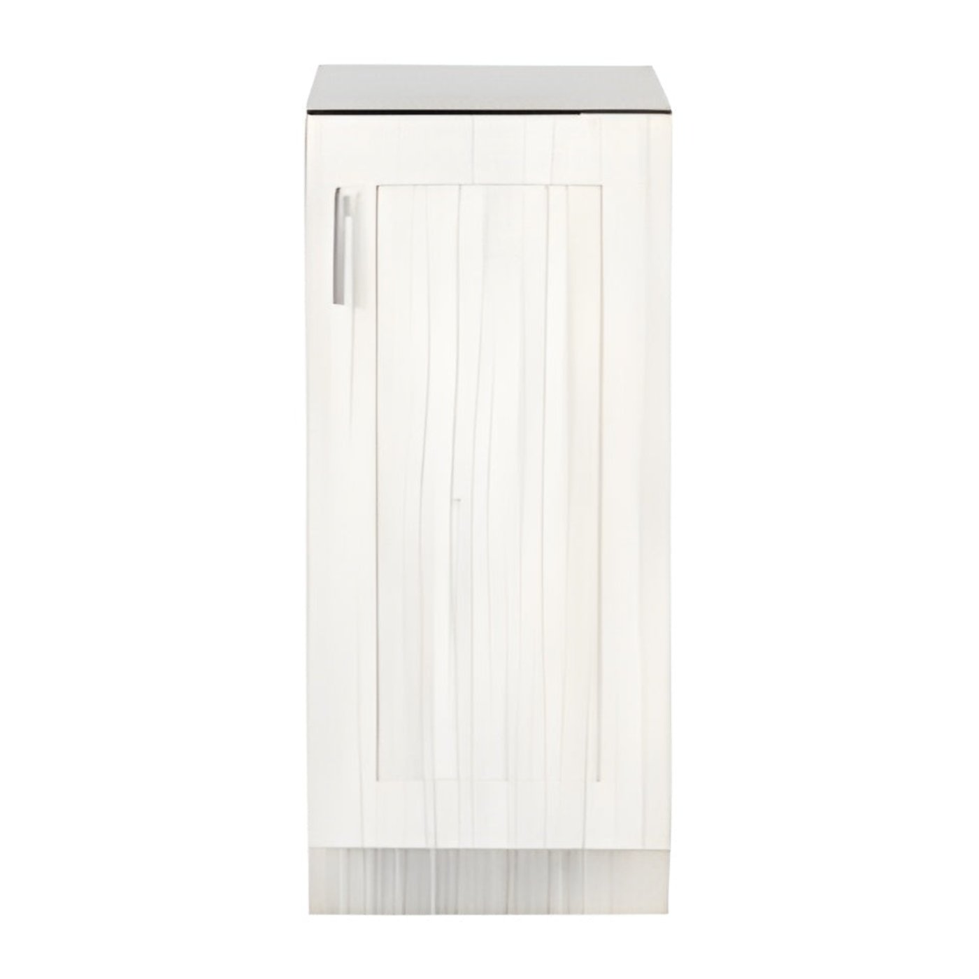 This outdoor refrigerator is designed with convenience in mind. The full-length flush LED theater lighting illuminates the interior, making it easy to find your items even in low light. The adaptable racking system includes 3 stainless front, full-extension racks with chrome-plated wire inserts, and optional shelf inserts, allowing you to customize the storage for food and beverages. A clear bottom crisper drawer provides additional storage. The unit ships right hinged but features field-reversible doors for flexible installation. With a precise zero clearance design, 4 independent adaptable leveling legs, and a fixed louvered stainless steel grille, this refrigerator integrates seamlessly into any built-in setting. The automatic defrost and standard lock add to the convenience and security of this outdoor appliance.
