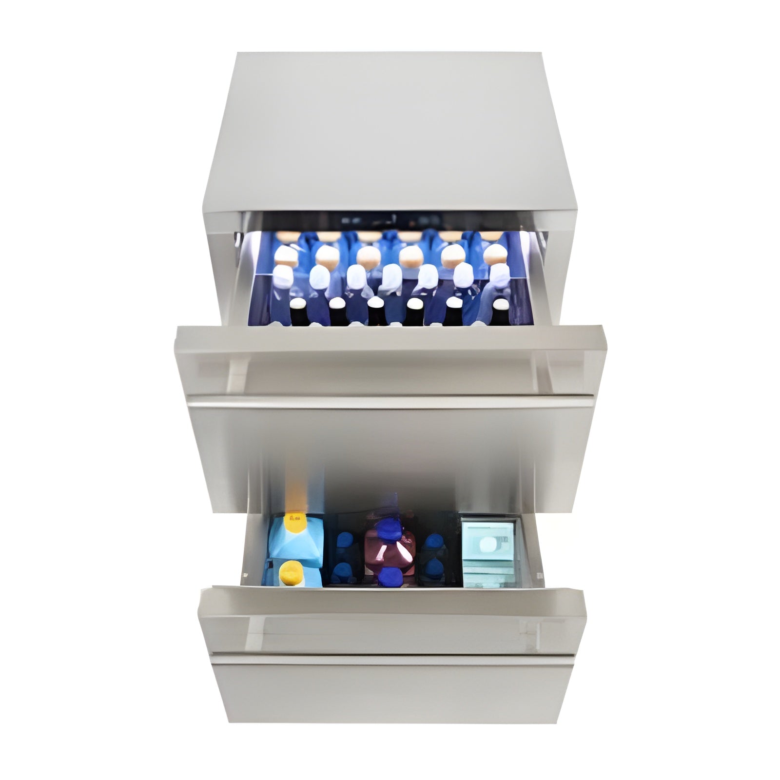Adaptable stainless steel dividers in each drawer allows customization of drawer space