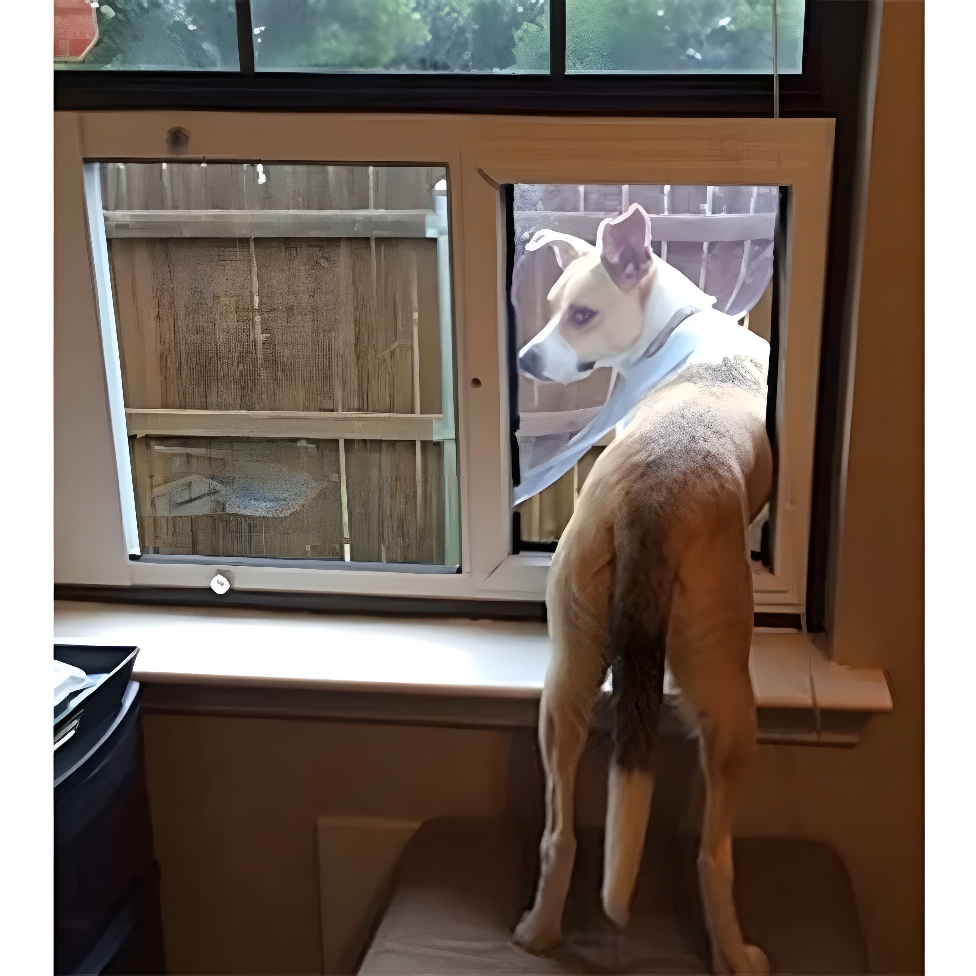 The most budget - friendly utility pet door for sash windows is the SB Standard Window Pet Door by Security Boss Manufacturing. Tempered safety glass and an adjustable, spring-loaded end allow for simple installation and removal on each unit. As you look out the window from inside your house, you can choose whether the pet door is on the left or the right side. All Security Boss products are hand built to order.