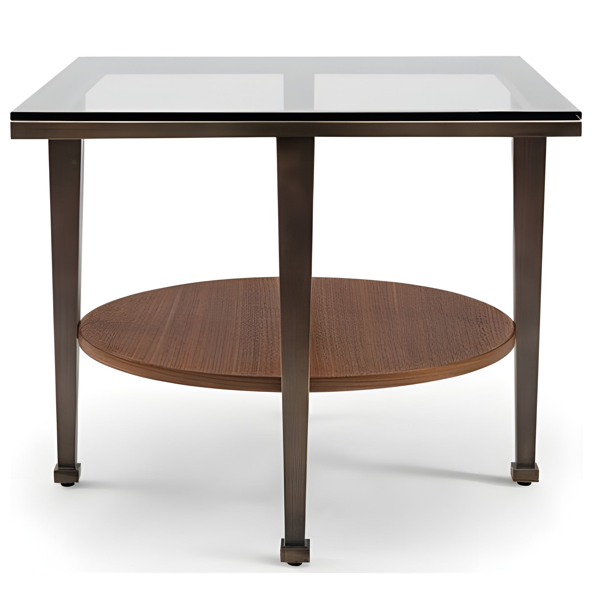The "Manhattan" lamp table is a beautiful combination of walnut, stainless steel with an antique bronze finish, and glass. The round form of the walnut shelf is set off by the square glass top. As beautiful as it is functional. The walnut shelf is useful for storing books, magazines, etc. while the top surface can be used for drinks and other items.This is an original design by award winning furniture designer Greg Sheres.