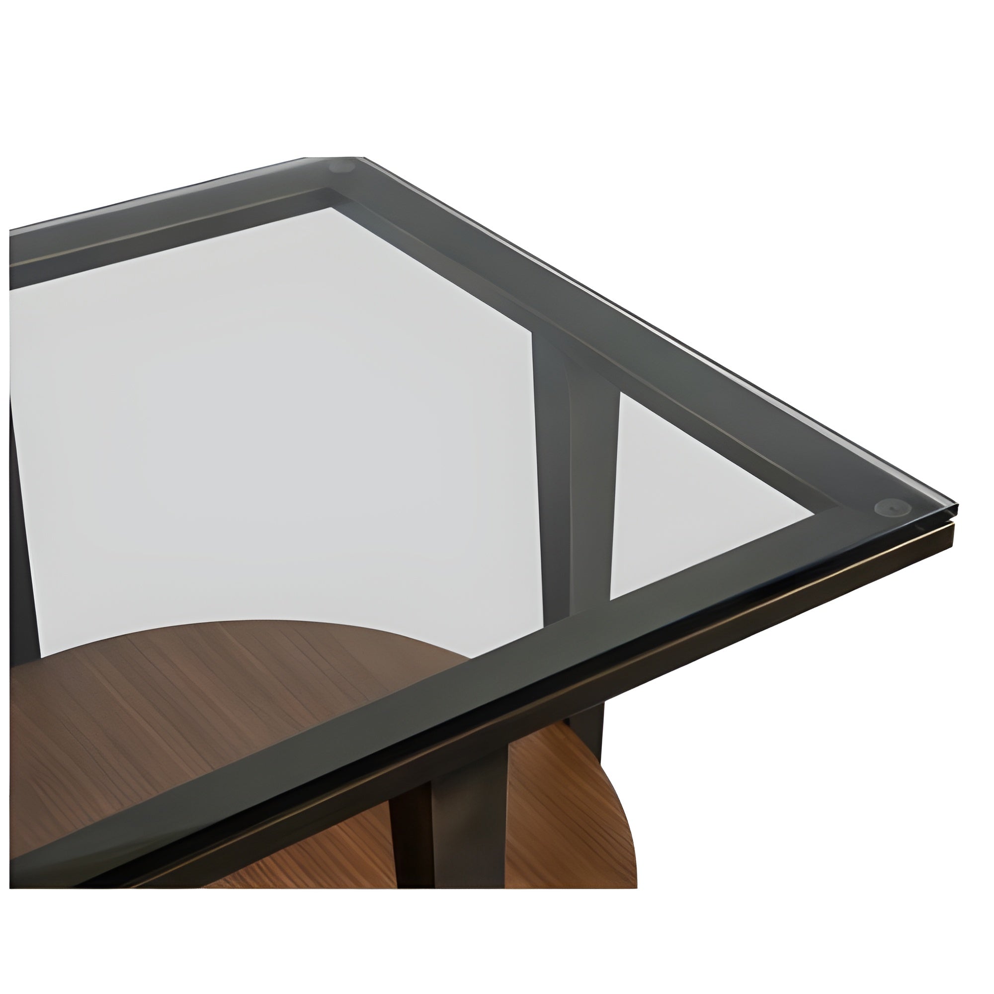 Functional Layout: Features a round walnut shelf for storage and a square glass top for drinks and decorative items.