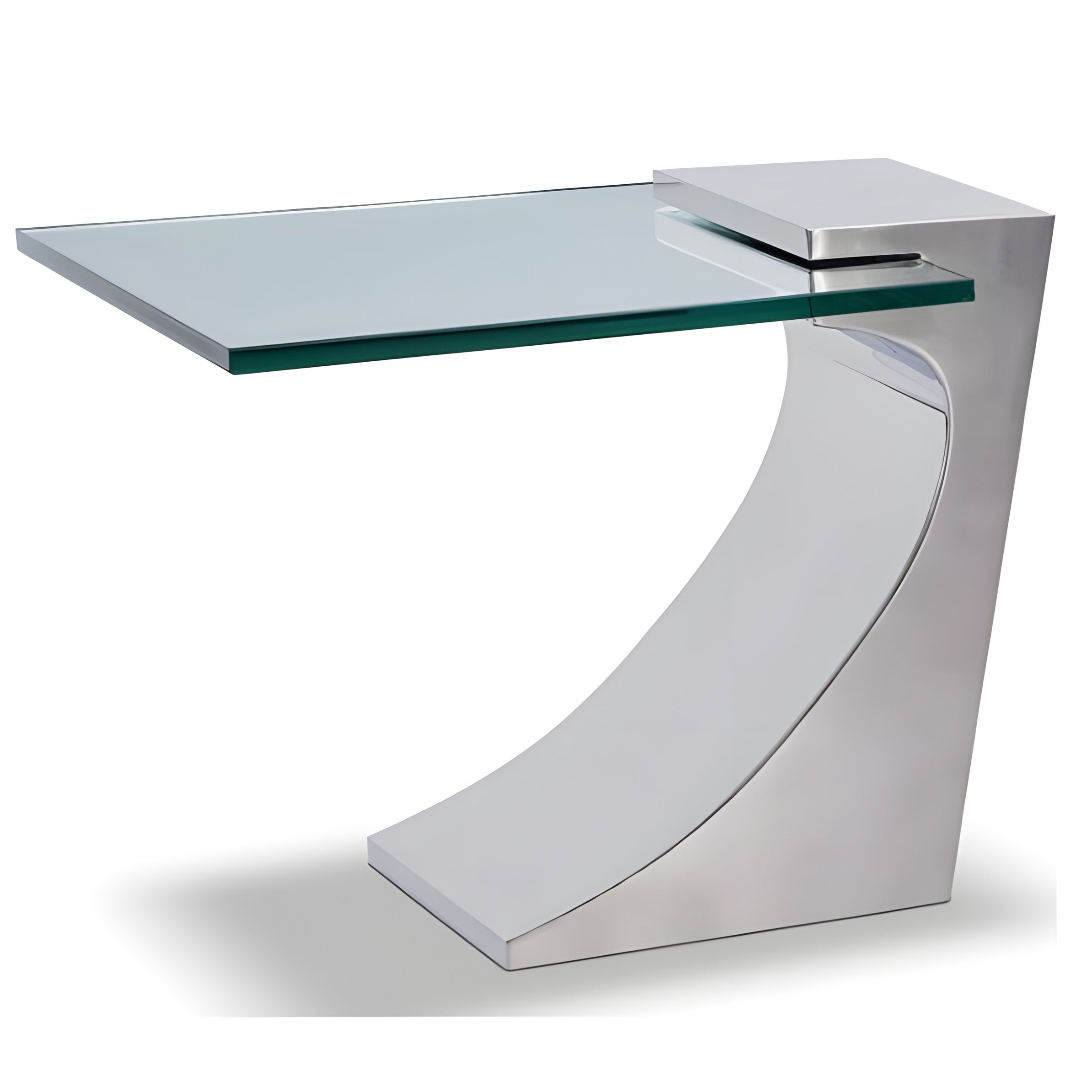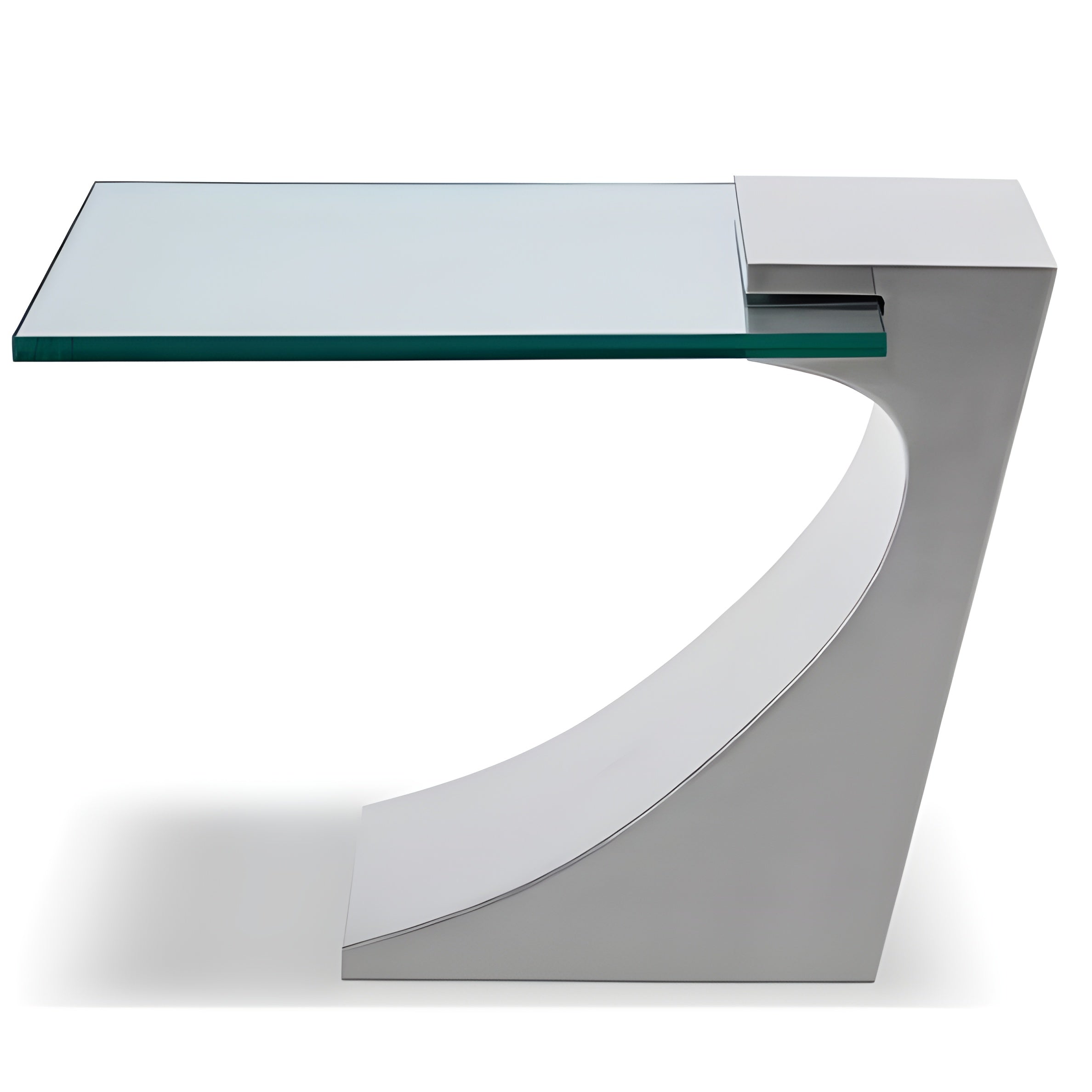 The "Manhattan" lamp table is a beautiful combination of walnut, stainless steel with an antique bronze finish, and glass. The round form of the walnut shelf is set off by the square glass top. As beautiful as it is functional. The walnut shelf is useful for storing books, magazines, etc. while the top surface can be used for drinks and other items.This is an original design by award winning furniture designer Greg Sheres.