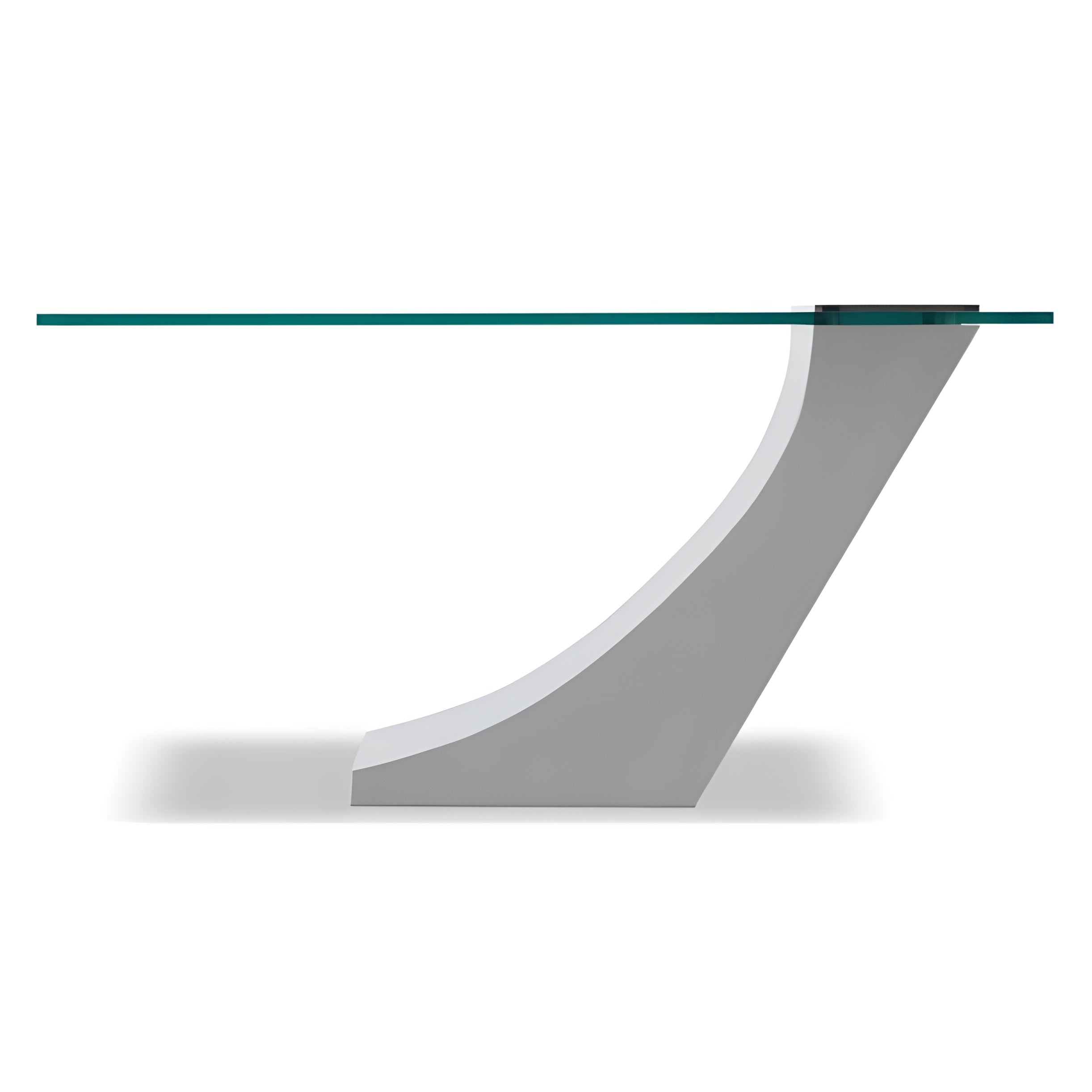 Elegant Design: Graceful curve and cantilevered glass top for a modern, artistic look.
