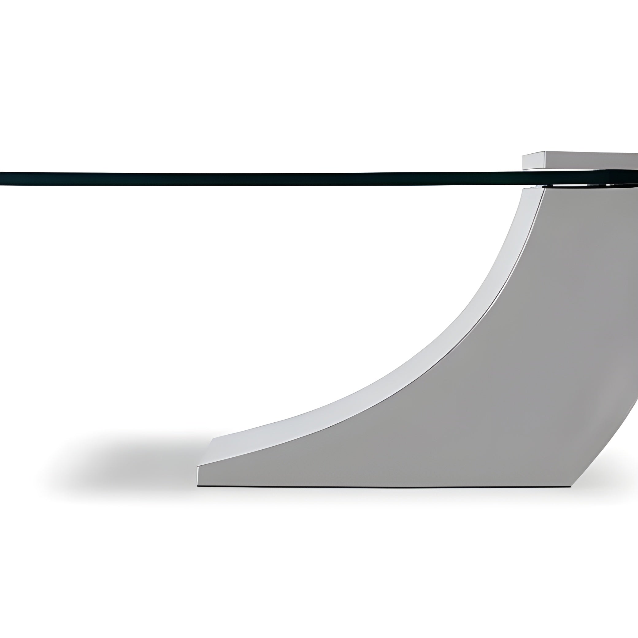 Elegant Design: Graceful curve and cantilevered glass top for a modern, artistic look.