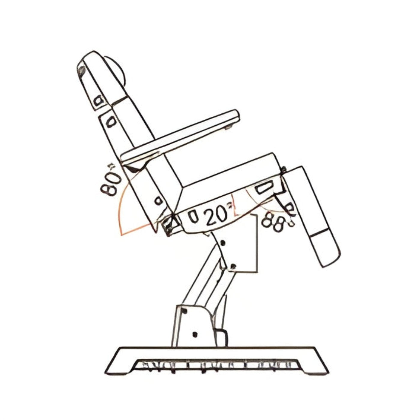 This facial bed includes 4 motors to control the back, leg-rest, height and seat incline. The facial chair is very sturdy with a heavy duty base and built-in foot pedals and includes a hand remote for convenient access to control wherever you are around the chair. The single column lift mechanism supports up to 440 lbs.