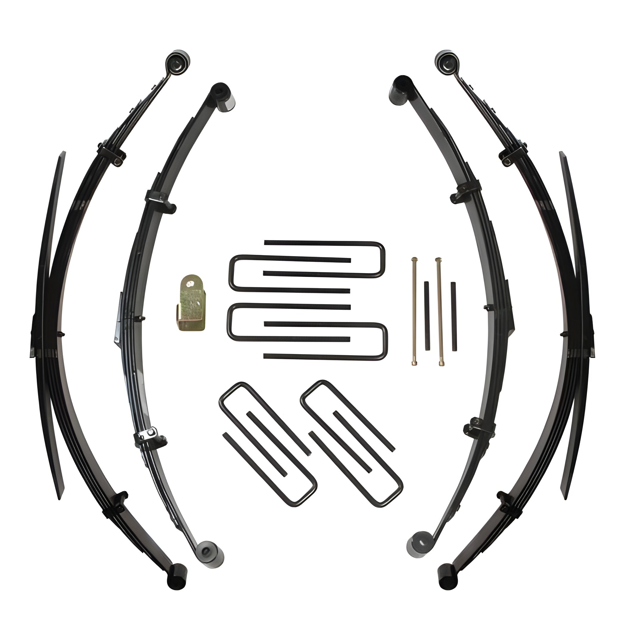 The Skyjacker 3" lift kit for the Toyota pickup includes front & rear Softride leaf springs with bushings & u-bolts and track bar bracket. The Softride springs manufactured by Skyjacker use tapered leaves to yield a lower spring rate and better travel, Teflon wear pads to help reduce interleaf friction, a "bolt" style clip to reduce leaf friction and shotpeening to compress the steel and increase its tensile strength. Shocks sold separately.