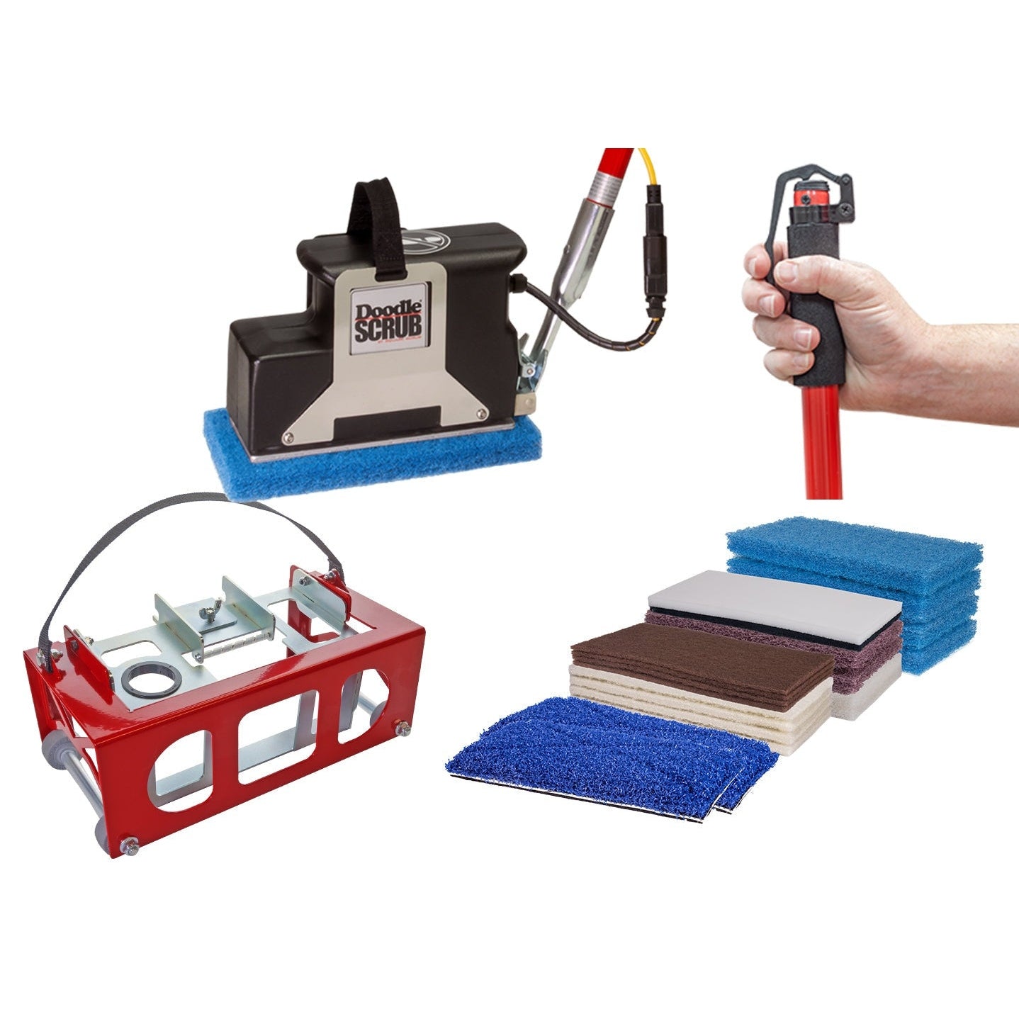 Bring your business into a new century of clean, with the Doodle Scrub Deluxe Kit from Square Scrub! This is the perfect solution for anyone ready to upgrade from their mop and bucket, and finally enjoy real results. Cleanliness and sanitation are vital for any public space, but particularly hospitals and restaurants, and that requires a commercial-grade surface preparation machine. High-traffic areas can quickly accumulate dirt, grime, and germs, and the powerful but small floor scrubber, Doodle Scrub, is the ideal solution to lift even the most stubborn soil out of hard to reach places. We’ve made it even easier to get a deep clean, with our Deluxe Kit, which includes everything you need to get started. Available in cord electric or battery power.