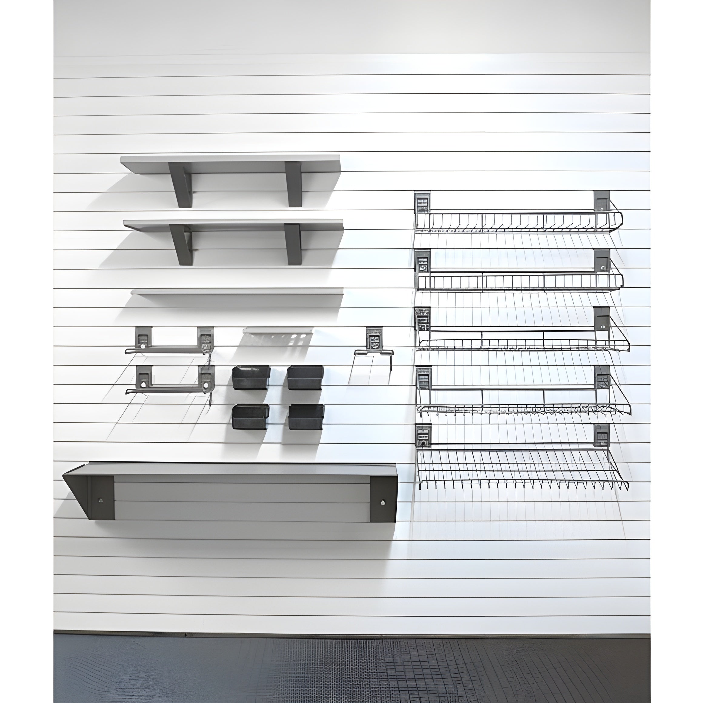 storeWALL Deluxe Garage Shelf Bundle has everything you need to move your garage from chaotic to organized. Gardening pots and tools, hand tools, sports equipment, box store surplus and work boots will all find a new home with these garage shelves.